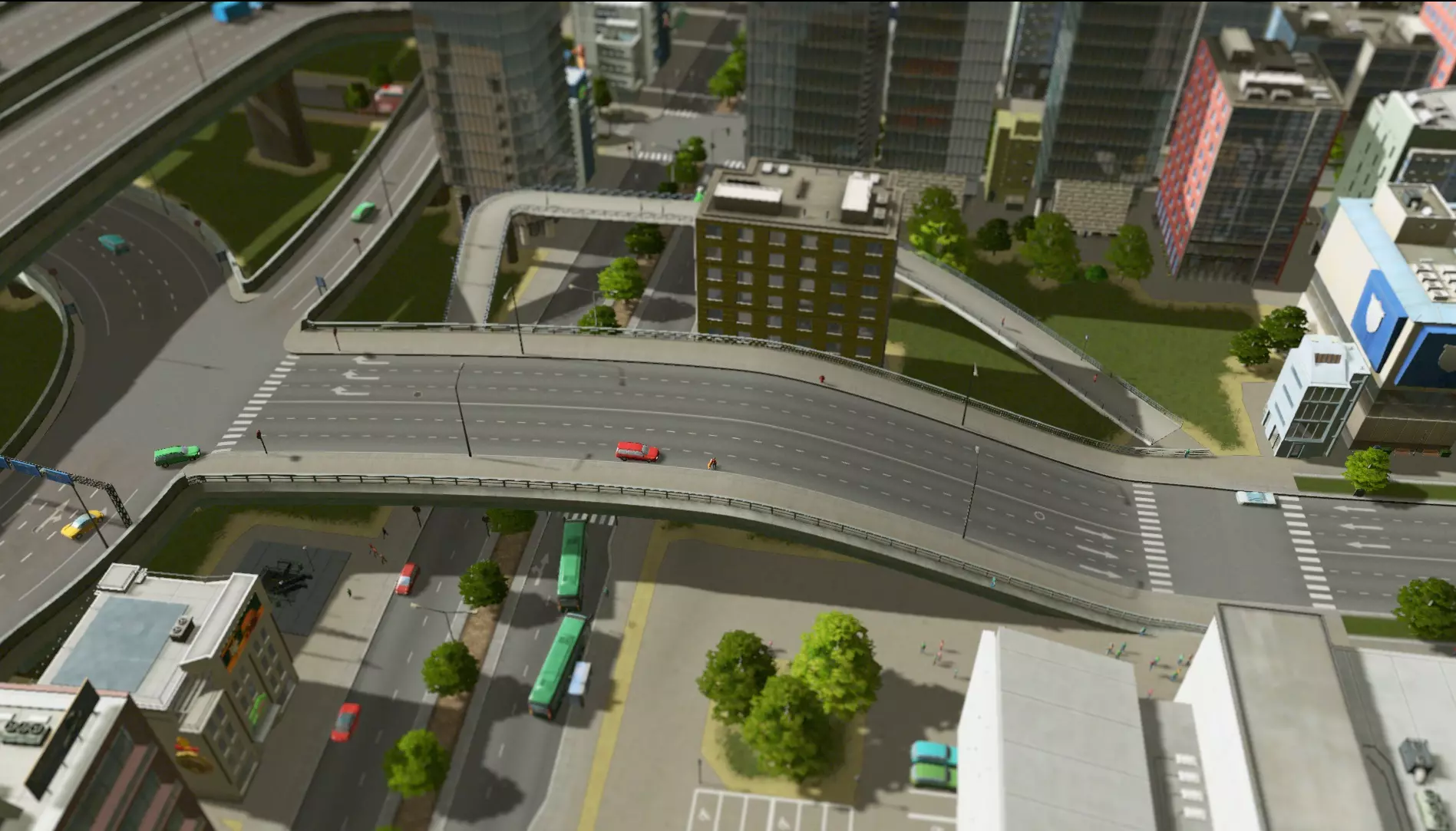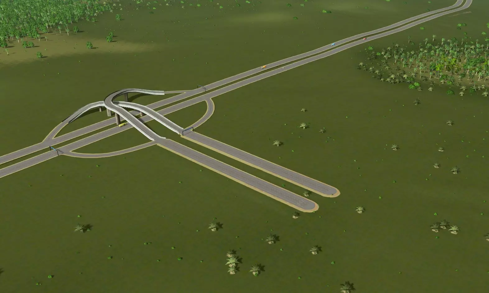 简答:不行。更大的入口匝道根本放不下——就算放得下,也无法避免车辆汇入。把它放在另一边也是同样的情况。此外:我喜欢这个互通式立交,它太对称了。 步骤7:在其他地方增加通行能力?