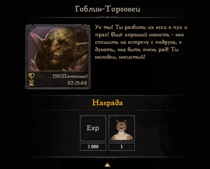 获取【Фелида】需要完成哥布林商人的最后任务,下面为大家介绍该奖励的任务链: 1. 任务“消灭绿皮怪” 在哥布林洞穴中需要: - 击杀5只哥布林弓箭手 - 击杀5只哥布林屠夫 - 击杀5只哥布林打手 2. 任务“死者的秘密” 在哥布林洞穴中需要: - 探索地点:“洞穴祭坛” - 必须逃离
