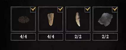 任务3【特殊藏品】 需要找到并提交以下收集物: 墓地精华 4个,发霉面包 4个,狼爪 2个,狼皮 2个