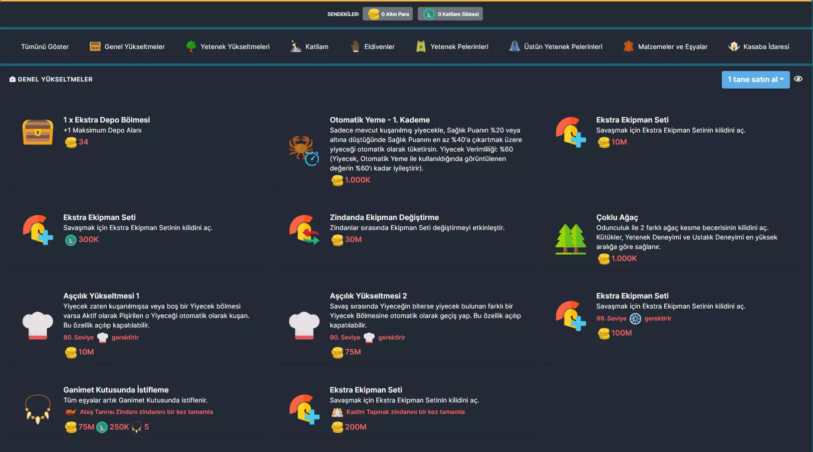 商店是你可以花费辛苦赚来的金币/杀戮硬币的地方。在这里你可以购买更好的战利品和镐子、更多的银行槽位、各种技能所需的部分材料以及其他物品。商店预览