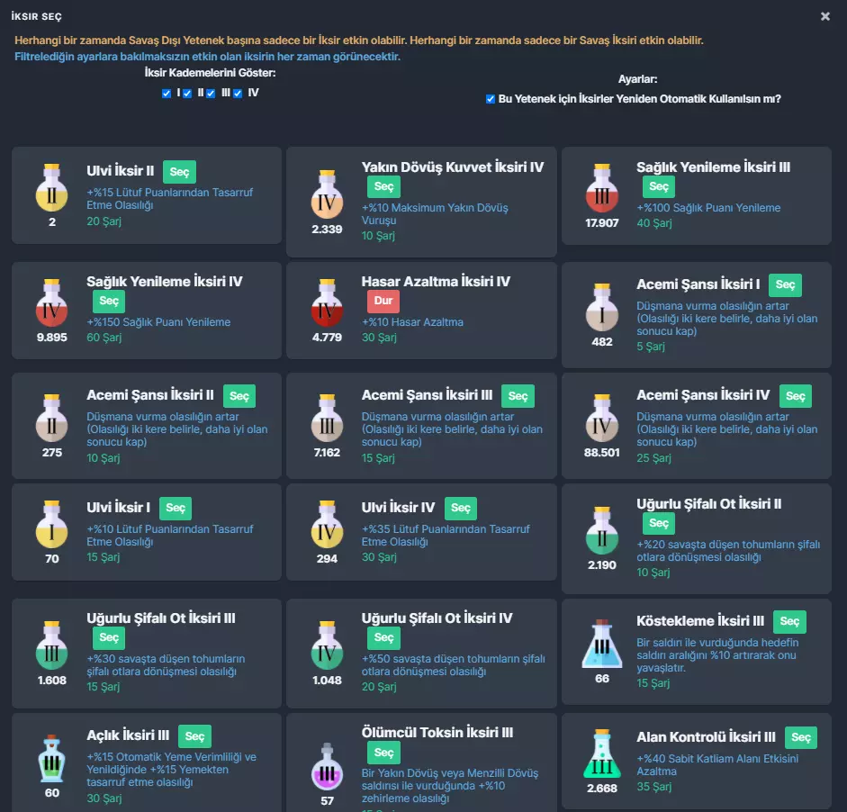 药水工艺 利用农业获得的魔法草药,可以制作出无数对各种能力有益的药水。 药水可通过点击右上角的【药水按钮】来激活。 以下是部分药水