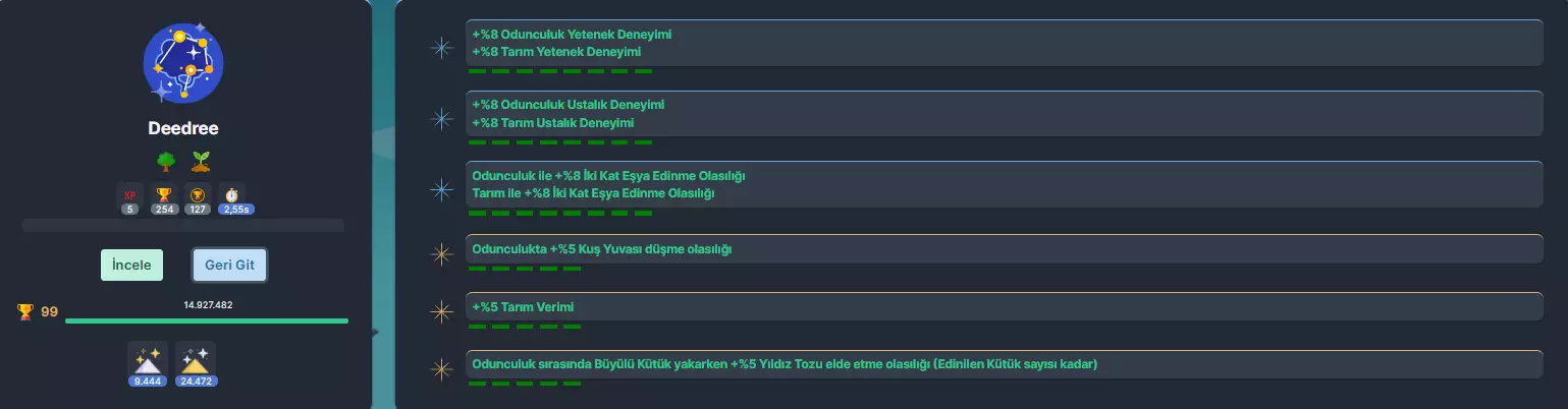 将迪德里(Deedree)培养至10级。 之后将以下角色培养至99级大师级: 伊瑞丹(Iridan) 阿梅莉亚(Ameria) 泰拉(Terra) 维尔(Vale) 技能强化:商店技能强化可提升木材、鱼类和矿石的采集速度。更高等级的技能强化需通过提升相关技能等级并购买已解锁的低等级强化来解锁。