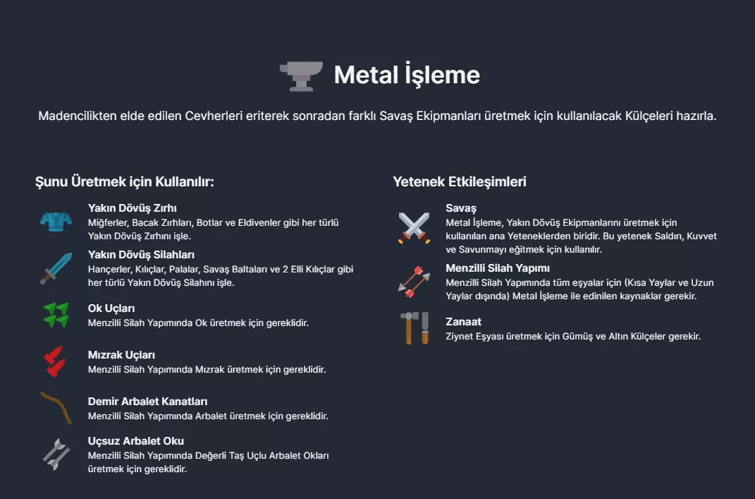 将采矿获得的矿石熔炼,以准备日后用于制造各种战斗装备的铸锭。