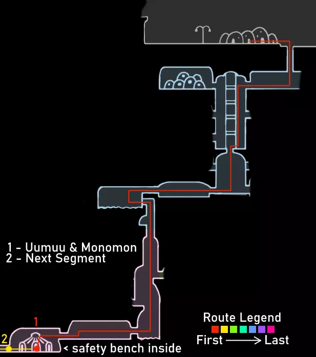 所需能力:无 前往教师档案馆。在教师档案馆内,获取顶部的安全长椅,然后与乌姆乌战斗并击败莫诺蒙。 离开教师档案馆,再次坐在安全长椅上。 向左前往王后花园。 第九段:赫拉