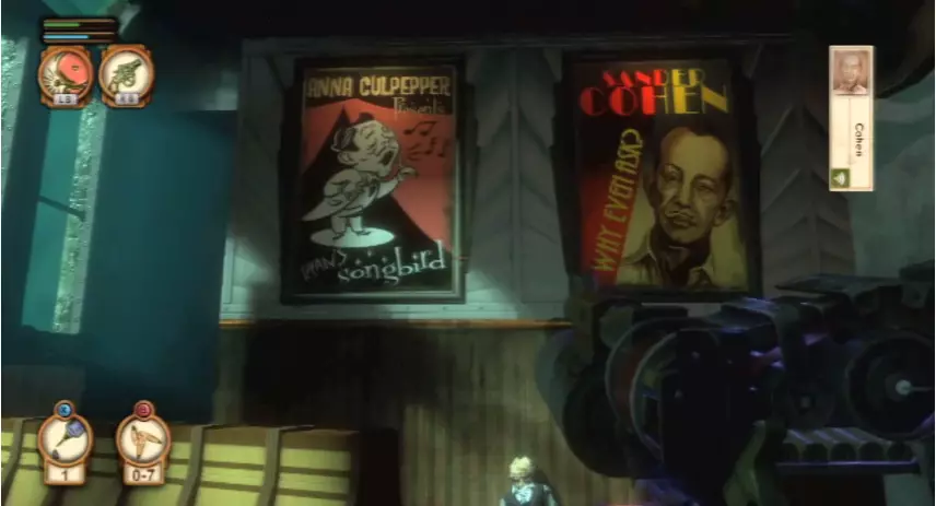 《生化奇兵:无限》中的鸣禽之死:此外,鸣禽在《生化奇兵》第一部的一张海报中出现。