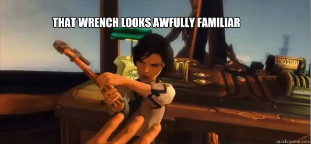 铁钳:布克被伊丽莎白用铁钳制服,这把铁钳与《生化奇兵》中使用的铁钳有着惊人的相似之处。