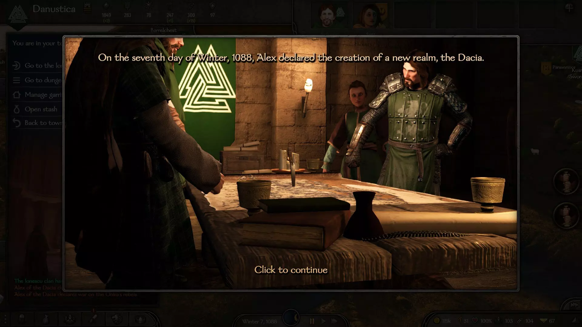 在围城战中务必点击【派遣部队】,这样击败敌军的几率更高。 建立王国: 当你拥有足够多的城镇作为后方保障,且距离建立王国的任务期限还剩一些时间(100-200天)时,就可以选择任意法律宣告建国。在你选定阵营完成主线剧情后,无论选择哪一方,都可以忽略【阴谋】任务,因为你会有足够的时间去完成主线任务。 用你的同伴组建第一批氏族,并只给他们城堡。这样做的好处是你无需再为这些城堡支付费用,并且能够组建大规模军队而不会损失金币。如果你让同伴组建队伍,你需要为他们的军队支付费用;而给他们一座城堡,让他们自行组建军队则更为划算。现在你可以击杀某派系的敌方国王,但前提是该派系中仍有他的家族或另外2-3个家族存在。他们是否会选择继承人或放弃,取决于运气。因此,如果你杀死国王且没有继承人,你将不战而获得所有城市和城堡。 现在你可以说服家族领袖加入你(连同他们的封地),而不是处决他们。如果你成功说服他们,你需要一次性支付金币,他们拥有的城堡和城市越多,你需要支付的金额就越多。