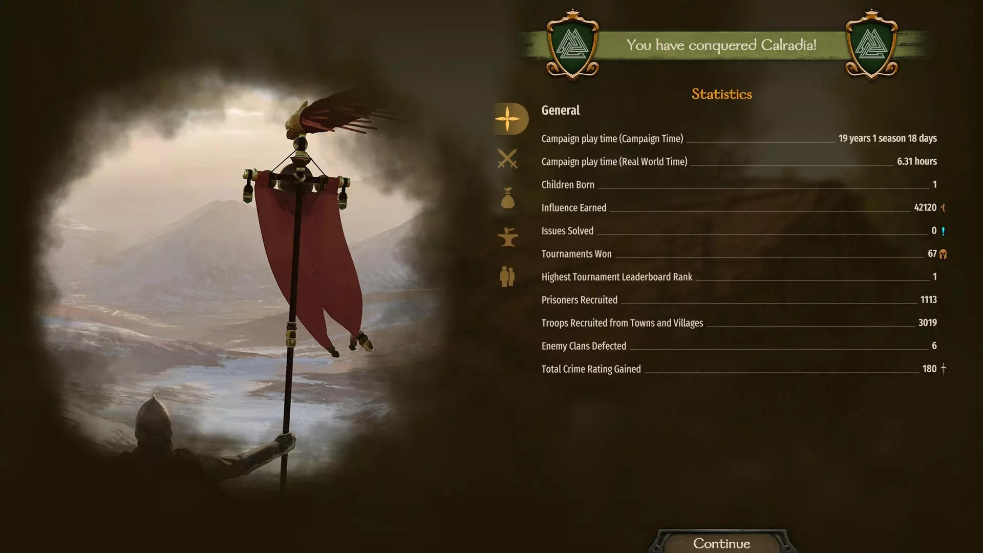 最终任务 完成主线任务后,所有与你所代表势力对立的派系都会向你宣战。 如果你选择支持帝国,所有蛮族派系都会与你为敌,有时帝国派系也会随机向你宣战。(此外,完成任务后,所有帝国派系都会加入你的王国) 如果你选择支持蛮族派系,所有帝国派系都会与你为敌,有时蛮族派系也会随机向你宣战。(和上面的情况类似,但完成任务后没有人加入你) 完成任务并击败这些派系的简单方法是,先消灭他们的军队,然后只占领城镇,这样你将获得更多的任务点数,敌人派系也会投降。