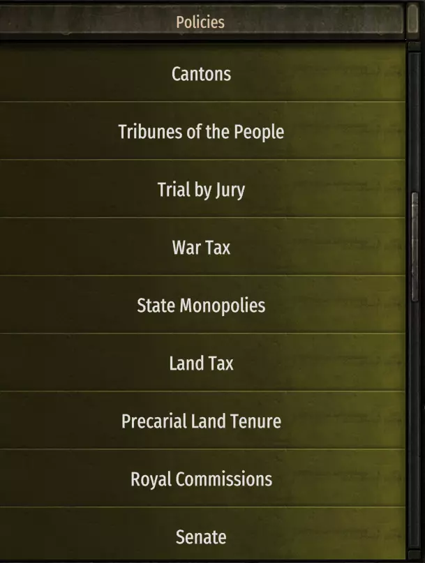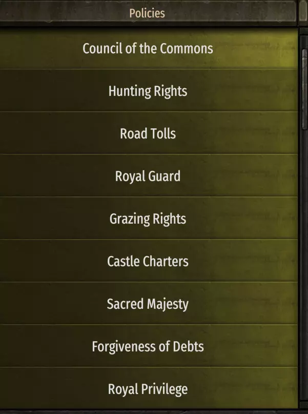 政策 这些是你在王国中唯一需要的政策。