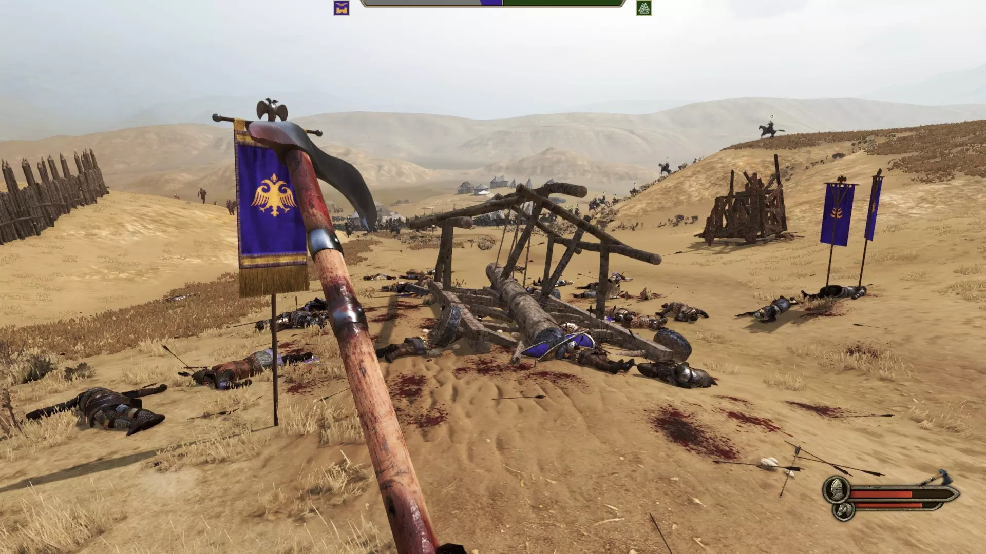 防御者 如果你陷入敌军数量众多,只能作为防御者参与攻城战的情况,首先进入游戏性设置中的选项,将战场规模设为极低(200人),等待时机并选择伏击敌人。不要忘记配备精锐骑兵,然后摧毁敌人已建造的攻城器械,不断击杀敌人,直到能够在不撤退的情况下完成伏击。