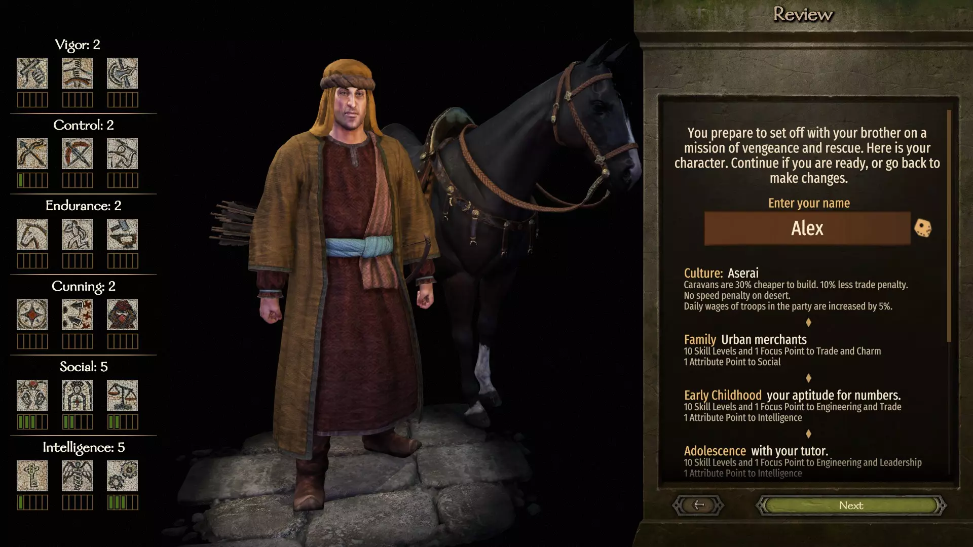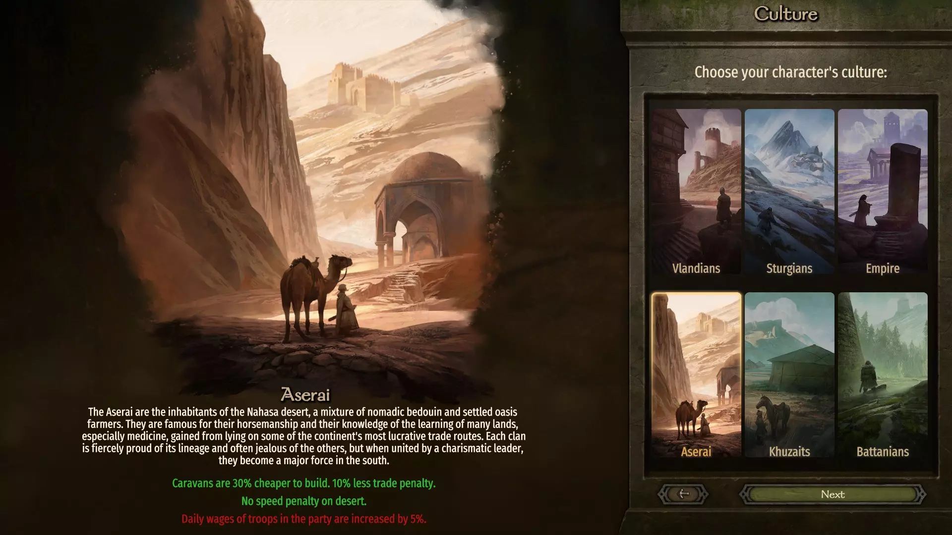 创建角色 首先选择阿塞莱,这样商队成本更低,并且在你日后征服阿塞莱时也有助于避免叛乱。