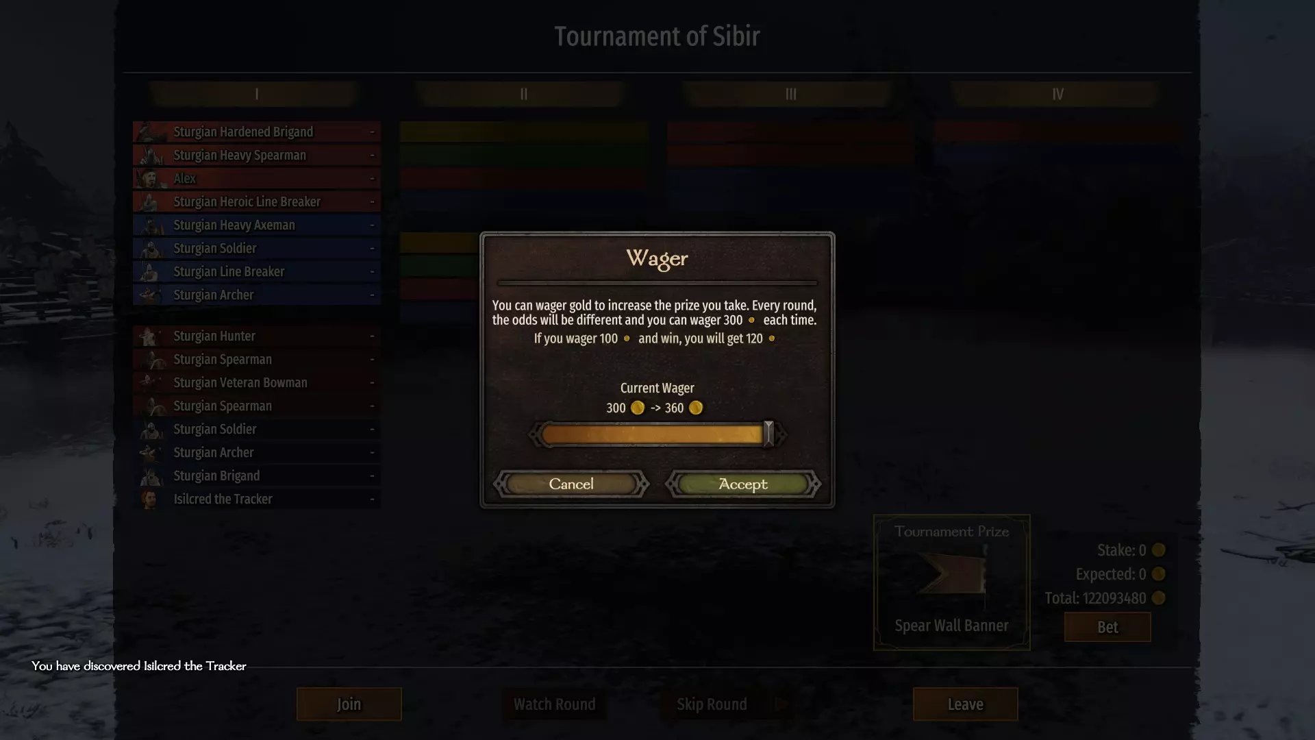 在他们名字的右侧有一个锦标赛。你也可以在这些锦标赛中找到优质且昂贵的物品,将其出售以购买商队,并从酒馆招募同伴。你需要同伴来派遣他们跟随商队,并且始终购买配备更精锐部队的商队,以避免被土匪袭击。