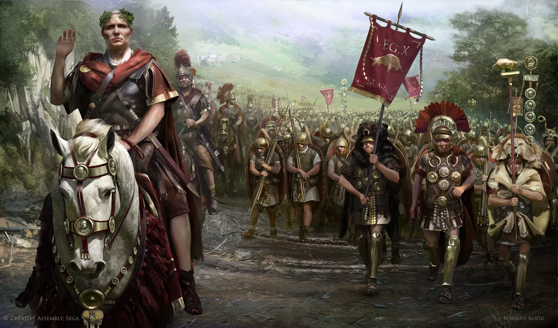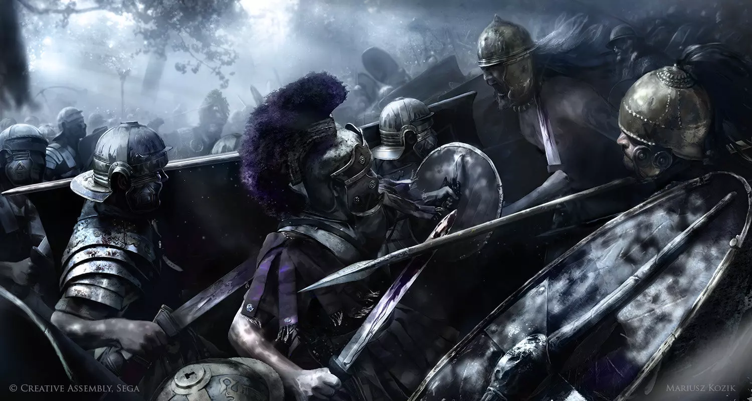 《崛起:罗马之子》 概念美术师:Silver Saaremäel、Ramon Contini、Kaija Rudkiewicz “他们之所以能,是因为他们认为自己能。”——维吉尔 “岁月会带走一切,甚至包括思想。”——维吉尔 “树曲则影斜。”——维吉尔 “恐惧是心智堕落的证明。”——维吉尔 “狼从不担心羊的数量。”——维吉尔 “激情与冲突会使心智屈服。”——维吉尔 “当一方凭借神明赋予的更强士气对抗敌人时,通常他们的对手无法抵挡。”——色诺芬 “心甘情愿的服从永远胜过被迫的服从。”——色诺芬 “死亡与生命并无不同。”——泰勒斯 “当大海波涛汹涌,狂风掀起巨浪之时,在岸边观望他人的挣扎是一件乐事。” ——卢克莱修 “内战造成的创伤是深重的。” ——卢坎 “再取得一次这样的胜利,我们就会彻底毁灭。” ——皮洛士