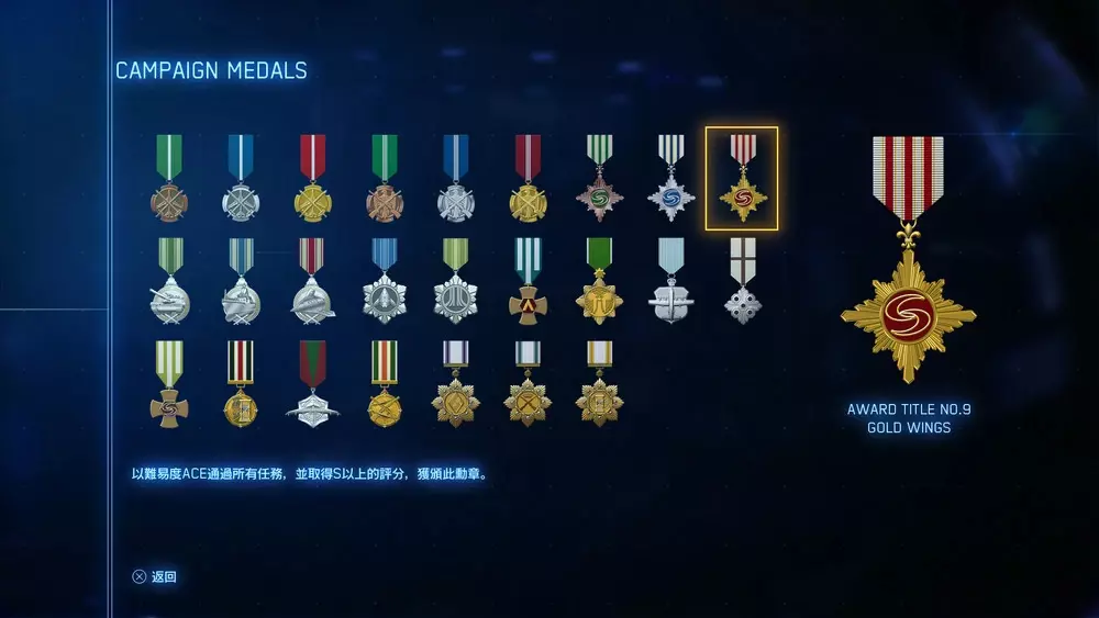 这包括以特定难度完成战役、获得勋章以及以最高S级评价完成每个任务。ACE OF ACES