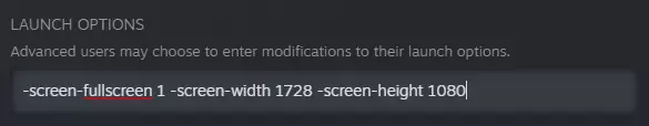 启动选项 以下是你需要的三个启动选项:-screen-fullscreen 1 -screen-width 1728 -screen-height 1080 如果1920x1080不是你的分辨率,请将屏幕高度替换为你的分辨率高度,并将屏幕宽度设置为高度乘以1.6。这将确保游戏以预期的16:10宽高比启动。 结果(1920x1080)