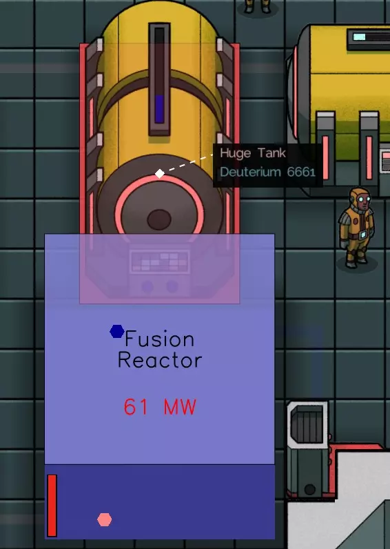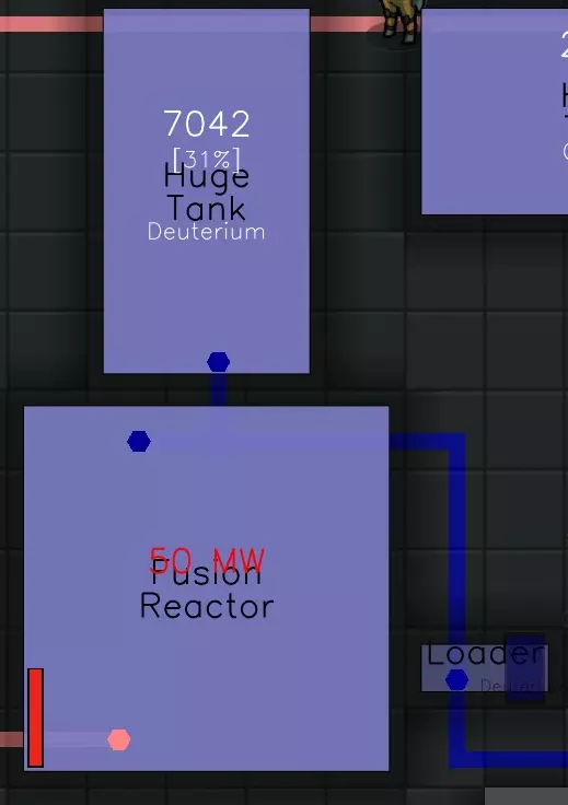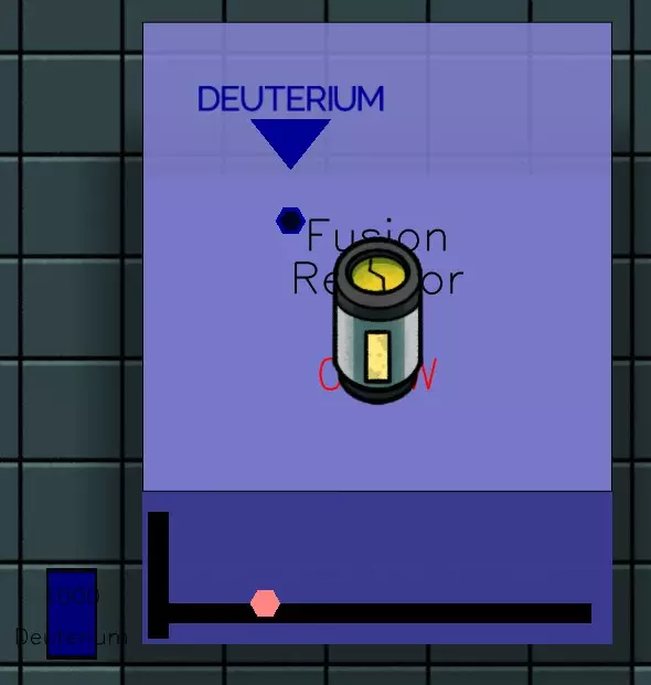 聚变反应堆需要电力进行初始化,并使用氘作为燃料。该反应堆的最大发电量为500兆瓦。在Alpha 3版本中可用。这是游戏中通过交易、生产和采集可获得的内容。创意模式下生成的物资会限制可提供的货物以及可用的装备。空气导管