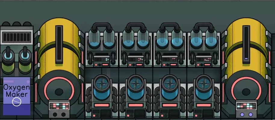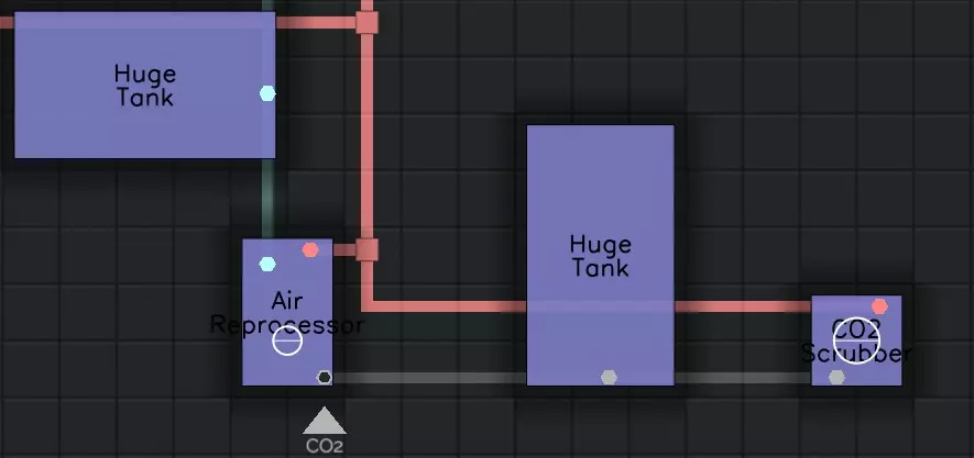 此设置展示了一个高效的二氧化碳转化为氧气的流程。所需部件:二氧化碳洗涤器、一个储罐和空气再处理器。飞船越大,所需的部件就越多。超空间收集器(Alpha 2新增)