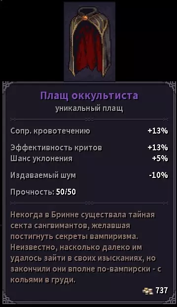 神秘学者披风(有低概率从修道院/地下墓穴的吸血鬼 Boss 处掉落)- 奖励:+500 声望 +1000 克朗