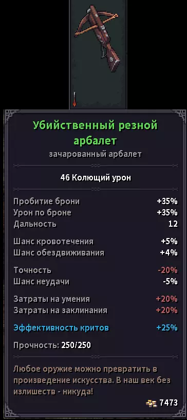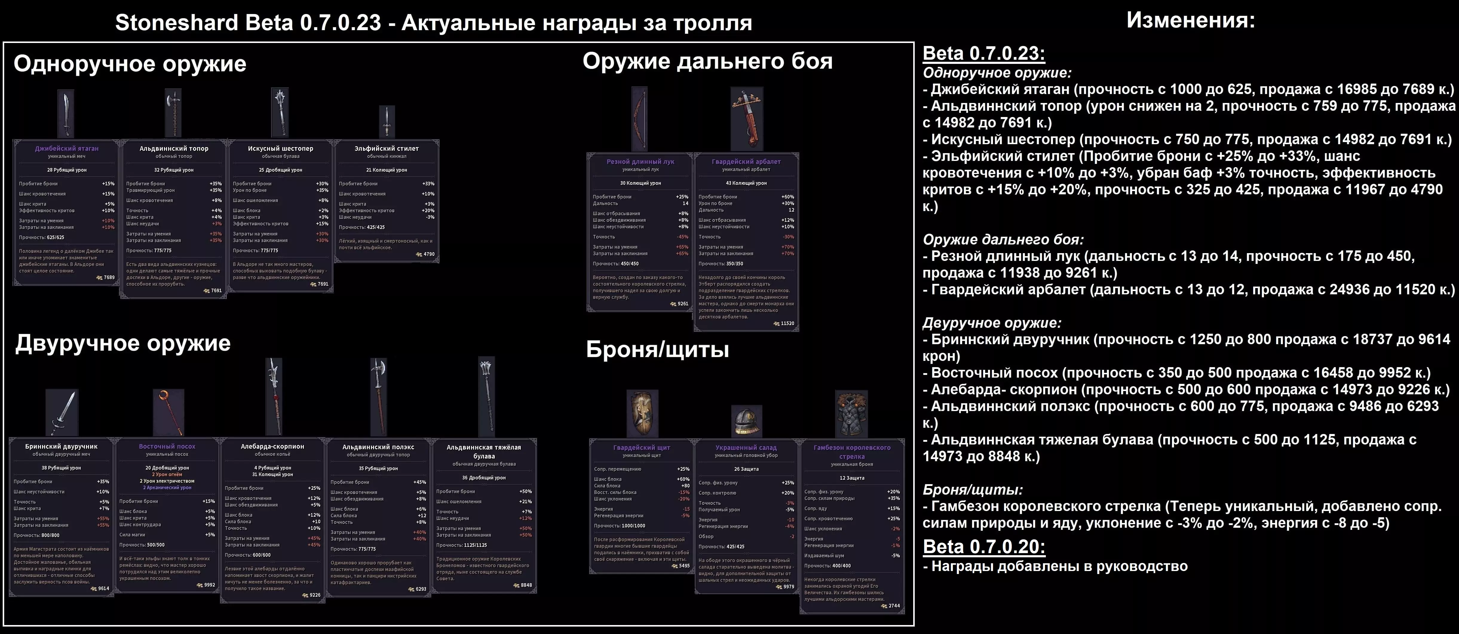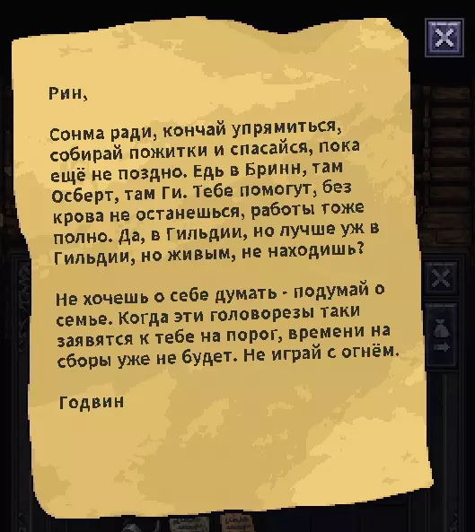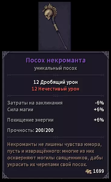Посох некроманта (с редким шансом выпадает из некроманта, держащего посох)- Награда: + 1000 репутации + 2000 крон -------------------------------------------------------------------------------- 📌 Советы (часть №1) 💬 Сюда набросаю, что для себя выудил в этой игре и использую: 1) Вспоминая про ачивки да и просто про кач, я обязан упомянуть, что перс прокачивается ТОЛЬКО до 30 уровня. На 30 уровне стопится кач. Так что дважды думайте, что будете брать и какие ветки вообще будете изучать. На одну боевую ветку, ту же атлетику хватит спокойно, а вот на ведение боя уже никак.. 2) Совет для милишников-тяжей: пока я блукал по карте, истер шмотки до состояния единицы, ну грубо говоря пыли. Пока вещи не уничтожаются, этим можно пользоваться. Как? - спросите Вы. Легко - отвечу я. С нами лучше не балуй, лишь бы цел остался… сет. Кто понял, тот понял. На самом деле, вещи точатся очень быстро, те же бои в мили высасывают из сета прочку как вы из торговцев голду после данжа. И если вы хотите на этом подзаработать, при этом сохранив какие-никакие параметры шмоток, можете вообще не тратиться на ремонт, онли оружие. Пока что нет каких-либо сильных противников чтобы бегать постоянно починенным в шмоте хайлвла. А, скажем, убитый сет до 26 армора при полном состоянии будет давать до 10 армора и половине сопротивлений при единице прочки. Ну это же сказка, братцы и сестры.. 3) Думаю, некоторые уже прознали фарм на пиявках. Неизвестно, будет ли это фикситься чи нет, но на стартовых локах пользоваться этим имеет смысл, если вам влом душиться в данжах и вы вообще пацифист в душе. Выгружаете из себя все более менее ненужное, броню, топаете на восток в сторону пивоварни и купаетесь, поедая собирая пиявок на продажу. 4) Уверен, что некоторым негде складировать шмотки после пары-тройки данжей. Сундук забивается всяким мусором-фиолеткой, ведь каждый из нас в душе коллекционер.. А на топовые расходники или шмотки на продажу банально не хватает места.. Выход есть! Раскидывайте шмотки в чужие контейнеры где угодно. Система преступлений не рассчитана на такой ход, вещи же ваши. Вы можете перемещать чужие вещи, но не берите их в инвентарь и ТЕМ БОЛЕЕ - НИКОГДА НЕ ЕШЬТЕ ЧУЖУЮ ЕДУ ИЗ КОНТЕЙНЕРОВ НА ГЛАЗАХ У ВСЕГО ПОСЕЛЕНИЯ. Я до сих пор не могу найти артефакт на снятие проклятия, чтобы выбросить одетую сраную филактерию из инвентаря и слить квест Манншира, чтобы вернуть репу... А если бы я не сьел крендель перед стражником, я бы не напрагался... 5) Раз уж зашла речь про кражи, то будьте осторожны, если хотите на этом нажиться. Стражники любят триггериться через определенное время, если вы вышли из здания в поселении с ворованной вещью. Через минуту, две, три или бл*ть вообще секунду прибежит тело и запросит посмотреть сумку.. В Осбруке и Манншире, к примеру, можно неплохо заработать, пошастав по чужим домам ночью (в Осбруке, играя за парного топориста, очень нужны были капканы на старте. Охотник не продавал, удалось найти в домах). Взламывайте двери, если стражников рядом нет. Но если их радиус обзора задевает вас, словите штраф. В домах же, если вы на одном этаже с жильцами, ждите, когда они уснут. Тогда спокойно сможете красть. Есть 2 варианта сбагрить краденое: Вынести вещи в Гнилую иву (благо, сейчас можно ездить на повозке). Спрятать, к примеру, в личном сундуке в таверне. Вещи потеряют статус "Украдено" через пару дней. Учтите, что своровав вещь в одном г