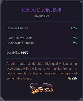 黄金决斗腰带 - 反击率:+3% - 技能能量消耗:-3% - 技能恢复时间:-3%