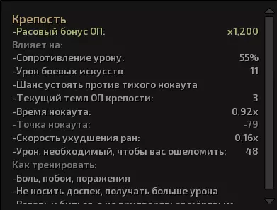 如果角色无法使用双手武器,将切换到轻型副武器(若有),若没有副武器则切换到格斗术。若身体关键部位的生命值降至零,角色将暂时昏迷。若生命值降至昏迷点以下,角色将陷入休克。角色的昏迷点可通过将鼠标悬停在左下角的耐力属性上查看,或在【HTK】选项卡中查看。不同的伤势对角色属性有不同影响,如果角色头部受伤