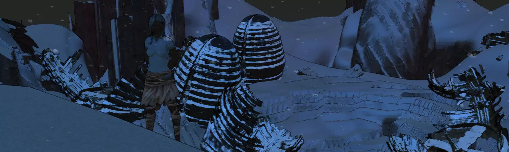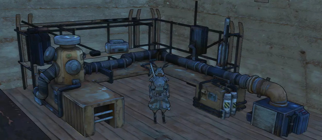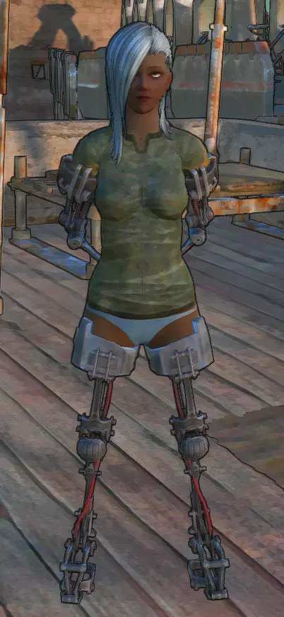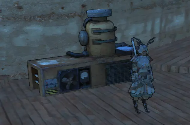 你并不需要那个学者,你只需要他背包里的东西。不,那不是梅托野太,而是一个名为“剥壳机”的结构图纸。拿到图纸后(怎么拿?我想你自己能搞定,你又不是小孩子),研究一下然后赶紧离开那里。学者怎么样了,无关紧要。接下来,在安全的地方建造剥壳机,然后按照截图所示,把你的角色放进去,等着他失去四肢。对了,角色自己无法被困在里面,也无法出来,所以才需要助手。一旦角色的肢体受损,要尽快把他带出来治疗,否则他会很快失血过多。还有,要先把角色身上的盔甲脱下来,不然盔甲会损坏。至于强化之后,你会得到这样一个“奇迹”(右图)。不过,把这称为奇迹可能有点牵强……你可以装备增强不同技能的义体,也可以装备削弱技能的义体。前者是为了提升你的属性,后者则是为了加快高等级时的升级速度。相信我,如果你研究并使用义体,会发现很多有趣的东西,这将对你未来的角色配装有所帮助。你甚至可以强化到让你的角色像挥舞小棍一样挥舞沉重的太刀,而且伤害还会非常高,总之,大胆去尝试吧。 古代遗迹。