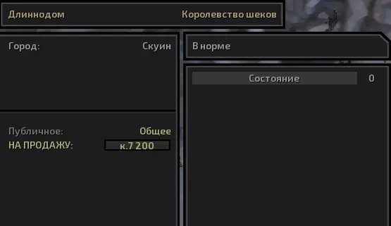 要发展的话,你总归需要第一个基地,所以我们来看看选什么比较好。首先,别想着建自己的堡垒,不然麻烦少不了。且不说会有没完没了的袭击让你不得安宁,就连正常发展都做不到。如果你还在【斯昆】,那就待在那儿,我觉得这是初期发展阶段最好的地方。城里有3栋待售房屋(要判断房屋是否在售,可左键点击房屋并查看左下角)。购买损毁的房屋后自行修复会更划算,算上材料成本,收益大约能翻倍。当然,你还得购买材料,但城里有资源商店。两天内你就能采购到足够的材料,最坏情况下四天也能完成。 截图中是同一栋房屋,但已经是购买并修复后的样子。