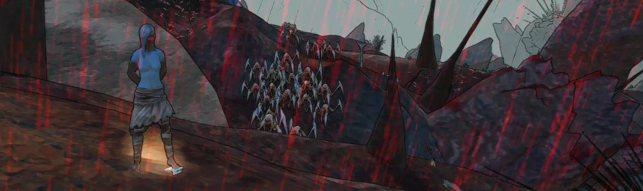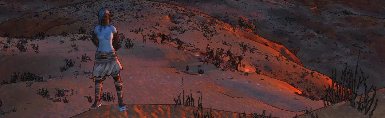 如果你光着身子闯进来,那你一定是疯了,但相信我,我能理解你,因为这里是提升你角色能力的最重要的地方。下面你就会知道原因。人类在这里是受欢迎的客人……受欢迎……【尤其是当他拥有完美光滑的皮肤时!】如果你没明白的话……如果你闯进来,他们会活生生剥下你的皮。罗伊和谢基虽然不太吸引这里的居民,但他们在这里也不安全。然而,无论如何,这里都是你角色成长的重要地方。稍后你就会知道原因。 灰烬之地