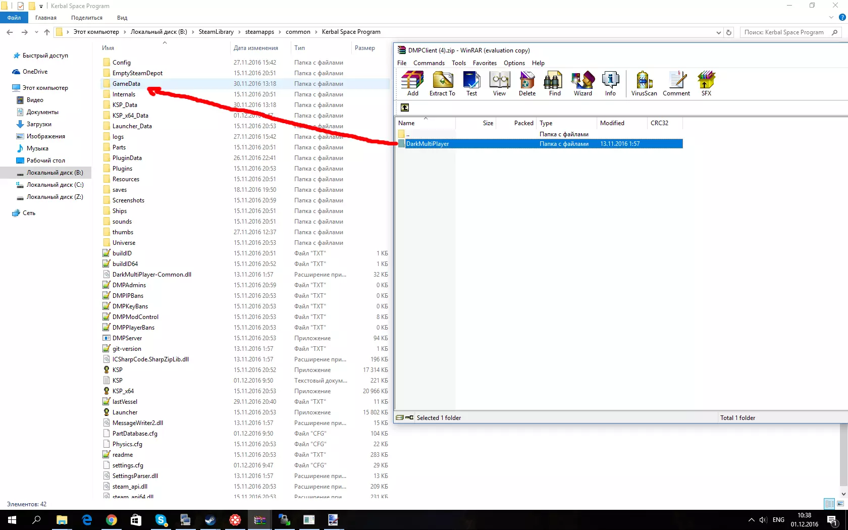 将压缩包中的DarkMultiPlayer文件夹拖入GameData文件夹