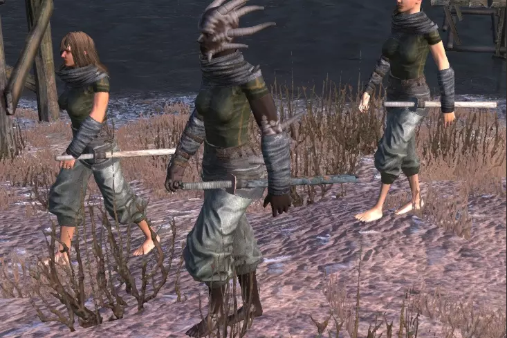 在商人行会框架内,设有一个专门从事奴隶贸易的部门。该机构负责控制帝国内所有城市的奴隶销售点,并协调在整个大陆范围内抓捕奴隶。 与母组织类似,该部门对其他大型派系不表现出敌意,与帝国保持着密切联系。尽管该组织不被归类为犯罪团伙,但它可能会袭击玩家的据点,目的是抓捕居民作为奴隶。 沼泽派系 1. 沼泽居民