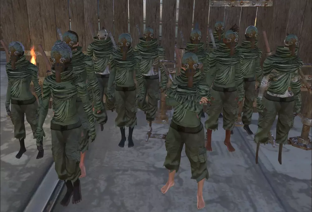 作为替代阵营“尘沙匪徒”,沼泽居民对玩家抱有持续敌意,甚至会袭击玩家的基地。他们会以小队形式出现在沼泽和南沼泽区域。该团体是沼泽忍者的死敌。 首领:红匪 控制区域:红刃藏身处 8. 沼泽忍者
