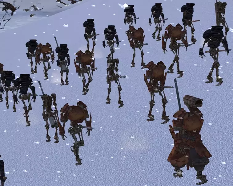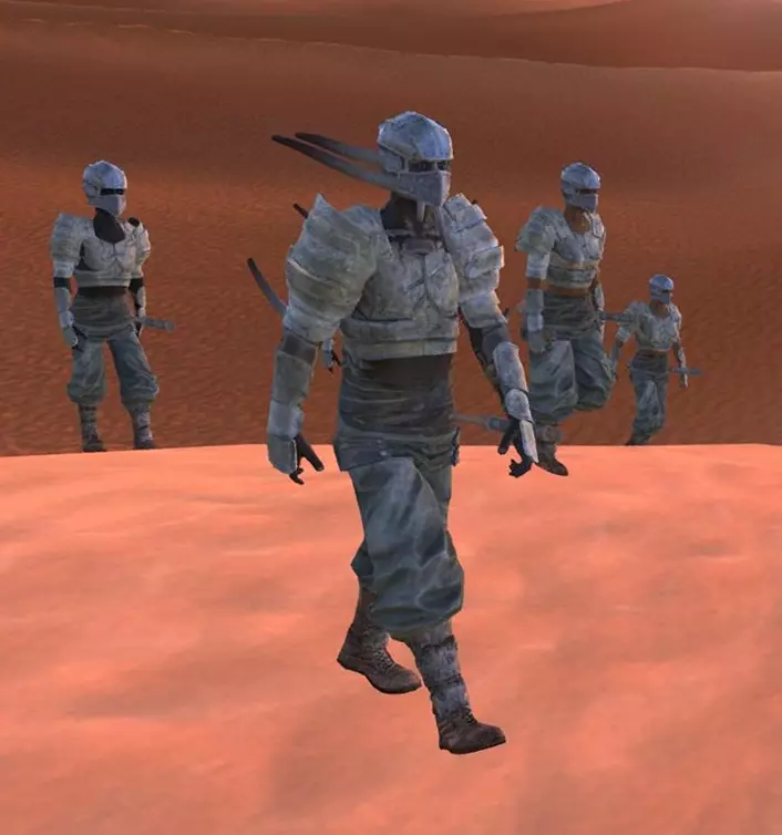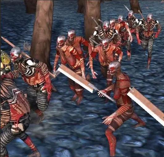 这个部落群体是一个堕落的仇外食人者社会,是整个大陆的主要威胁之一。在游戏事件开始时,他们控制着整个北部地区,摧毁了多赫洛科特,并正在逼近帝国边境。尽管拥有智慧,但他们原始的发展水平使他们的交流仅限于“肉!”之类的简单感叹词。它们的行为是出于本能地攻击一切看起来像食物的东西。这个族群的起源仍然不明。游戏内理论有两种推测:一是数千年前因古代实验室事故产生,随后不受控制地在大陆蔓延,尽管第二帝国曾试图控制它们;二是自第一帝国时期就已存在,甚至可能更早。领袖——大萨满、肉类领主和强大罐头 控制着食人族首都、第一村庄以及多个较小的村庄。 7. 血腥突袭者