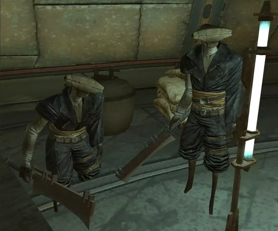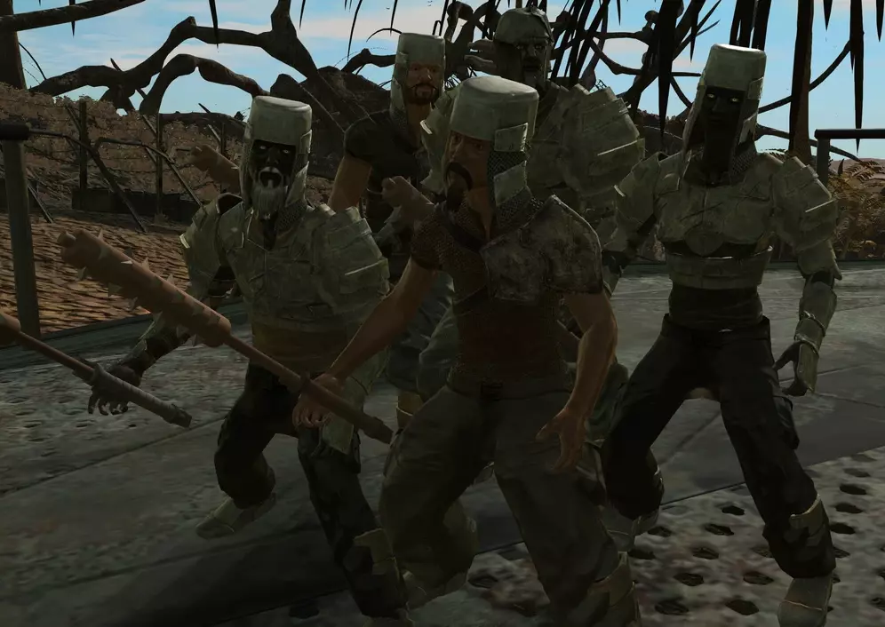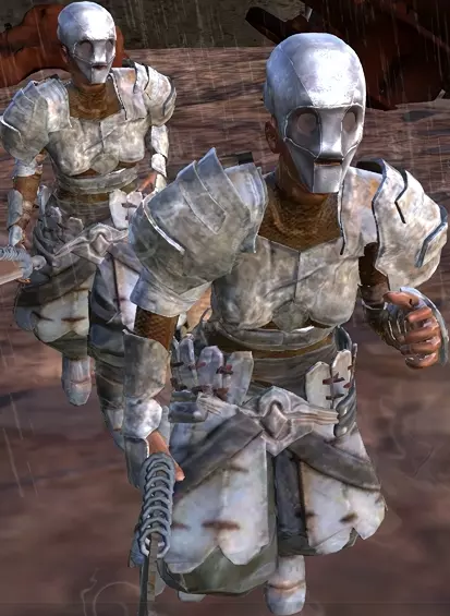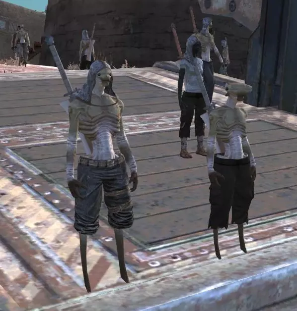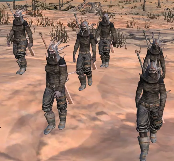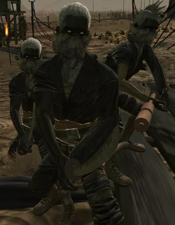 在边境地带生活着圣国的前奴隶、仆役和罪犯,他们不愿加入忍者叛乱者。他们不会对玩家表现出攻击性,但在急需食物时可能会发起攻击。他们对骷髅的反应表明,其中许多人仍然信奉护教。 由哈布控制。 7. 皮革匪徒