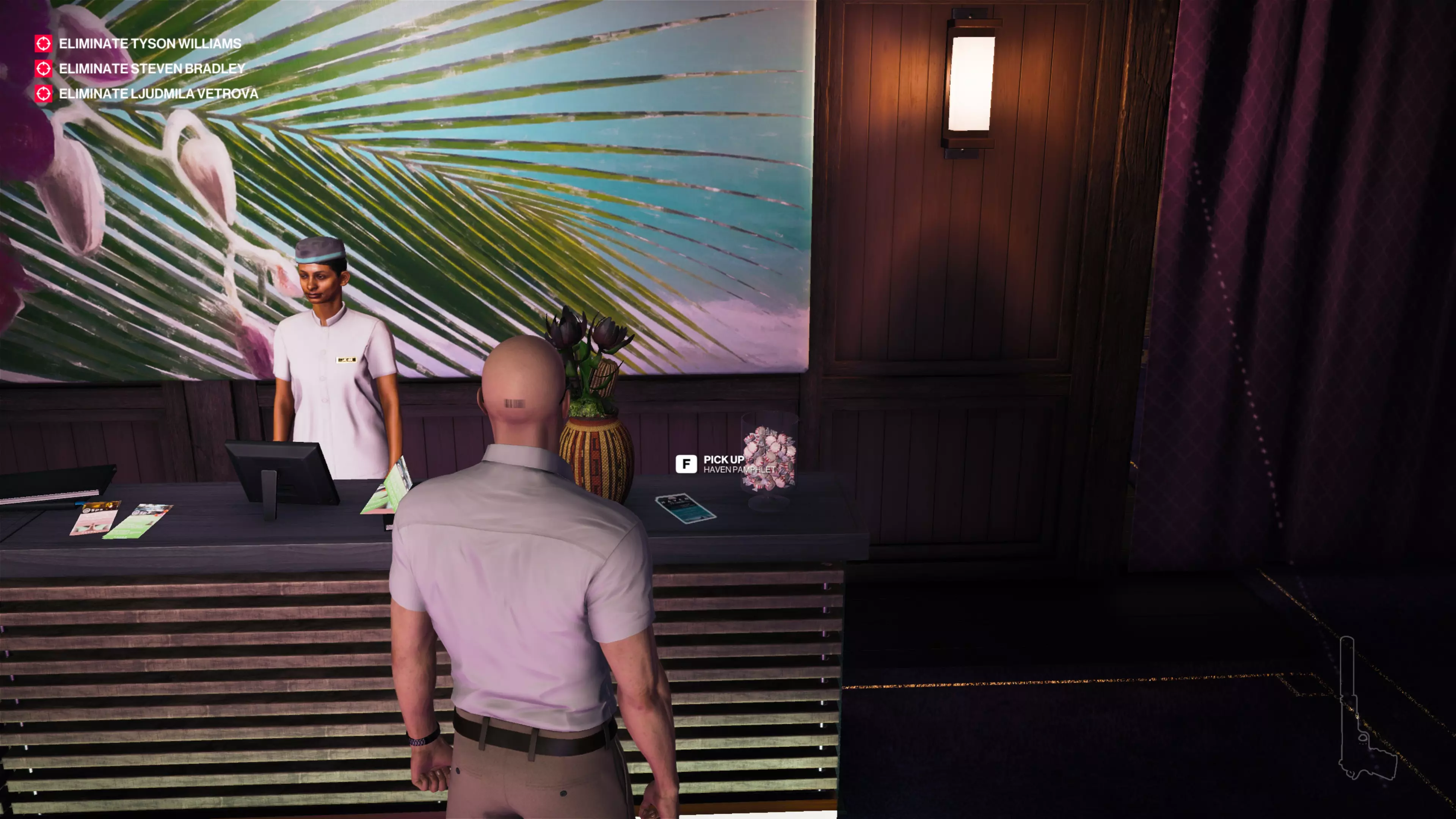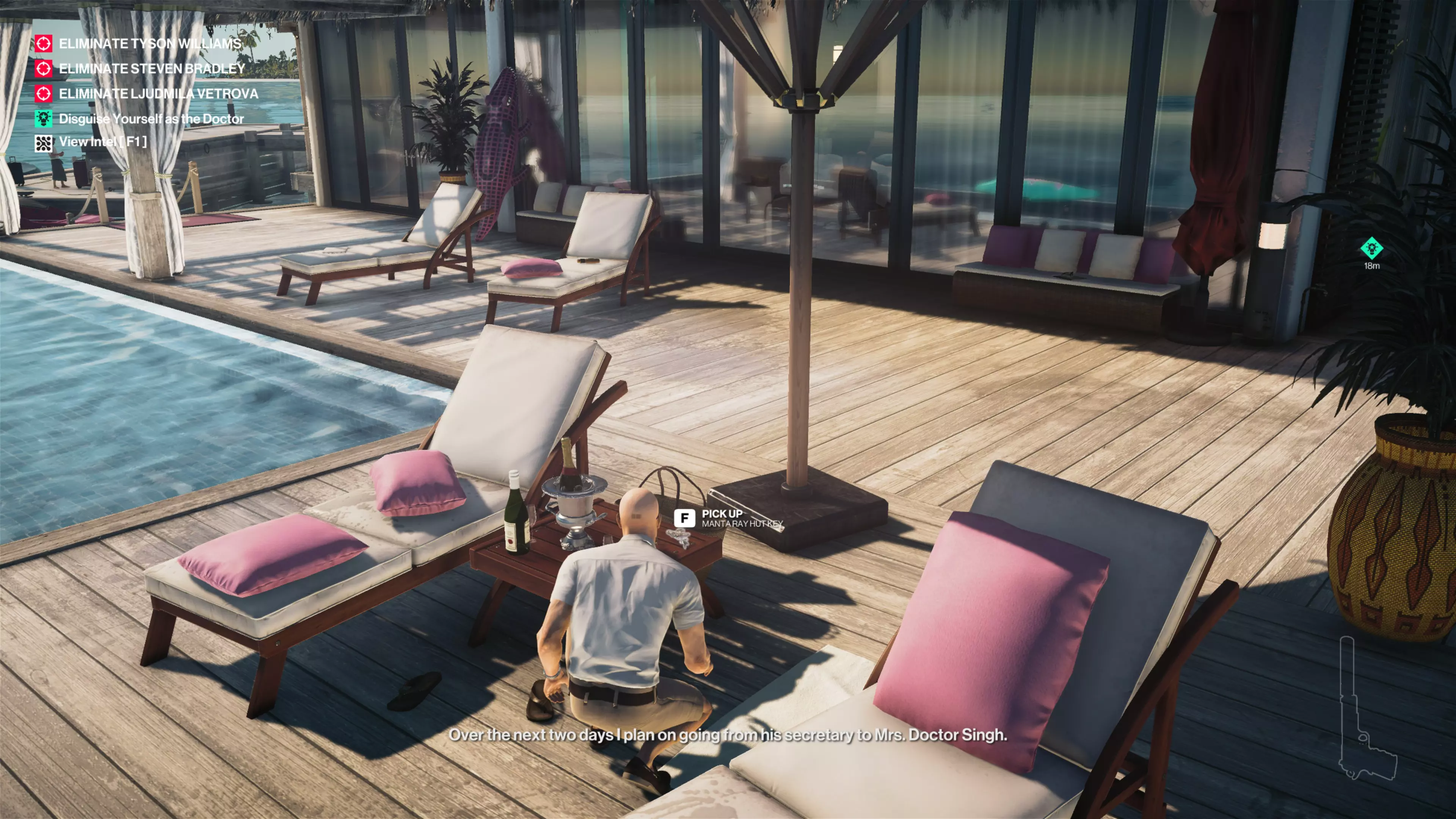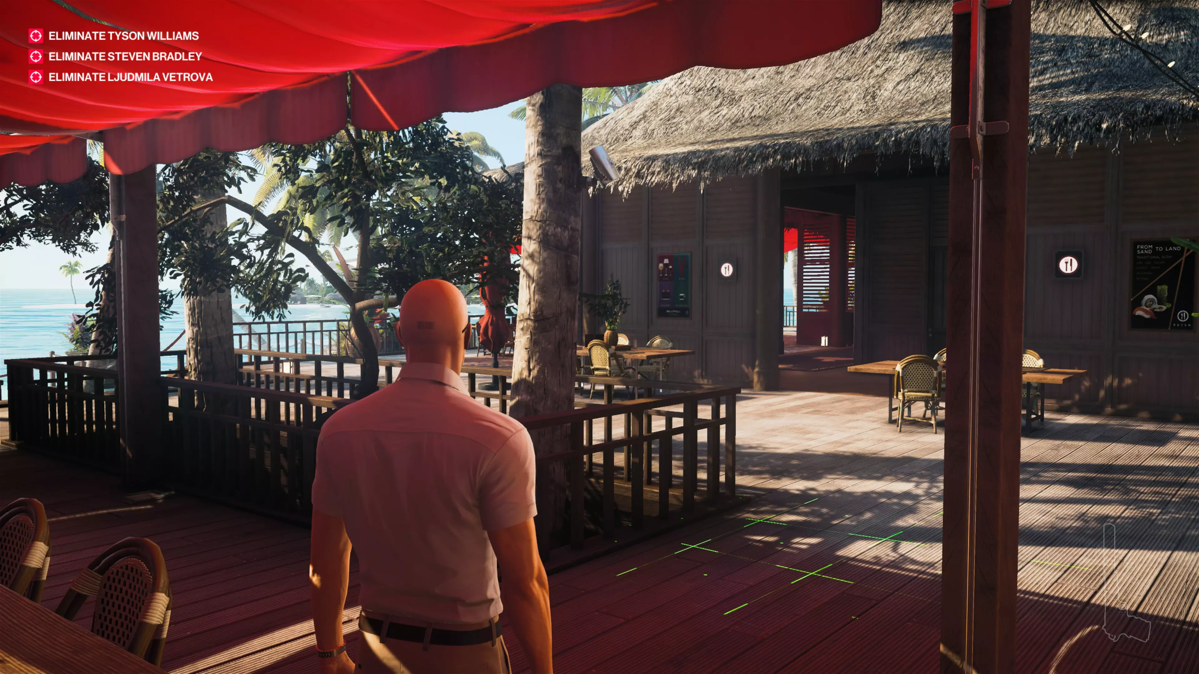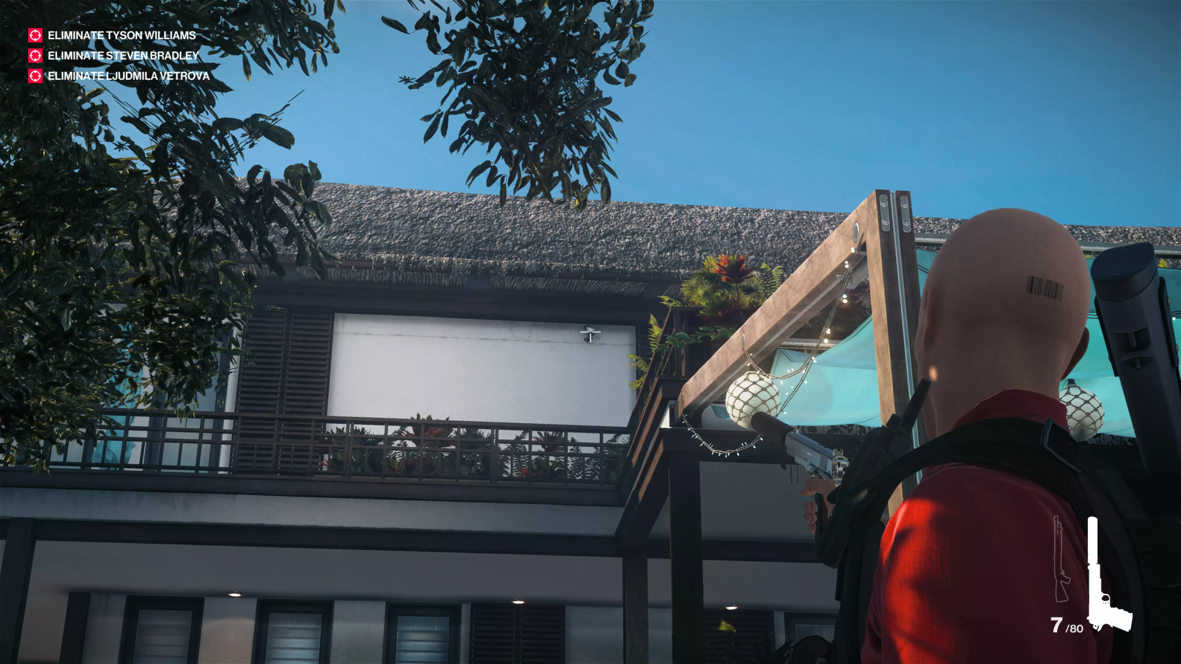 14/22:如果你还没拿到别墅守卫伪装,先去获取。然后从私人岛屿前往别墅后方。在私人酒吧上方,你会看到别墅顶层有一个摄像头。