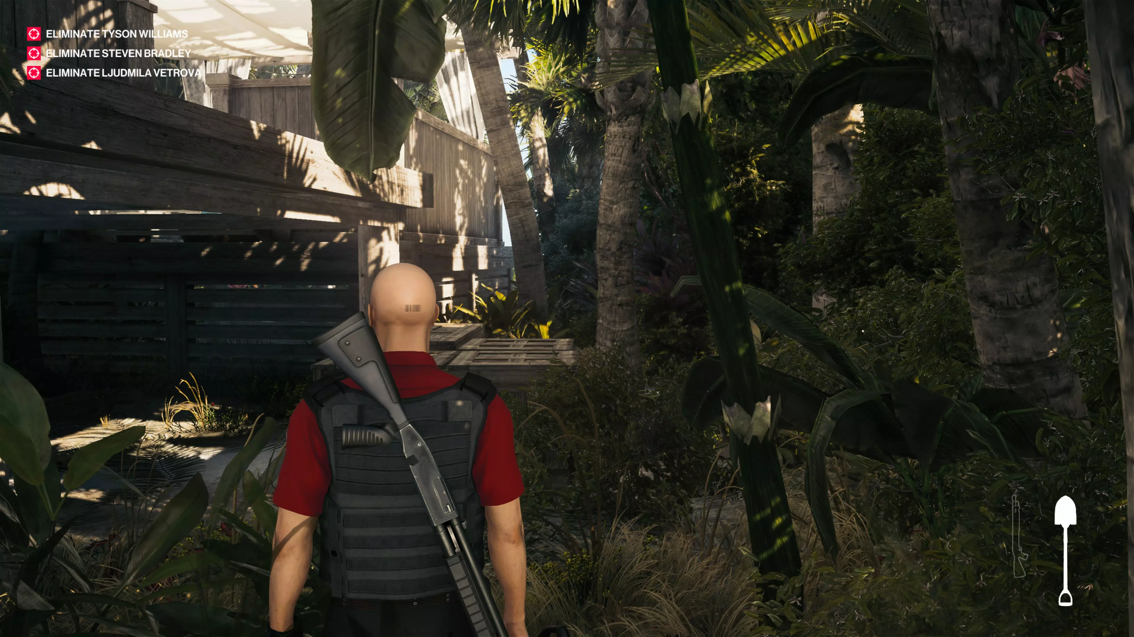 在这个挑战中,你需要找到藏宝图的所有3个碎片,然后挖出宝藏。找到3个碎片相当容易,但定位宝藏可能会相当困难,不过我会在这里解释你需要做的一切。 首先,你要前往酒吧区域。你会看到一个打扮成船长的人,他拿着藏宝图的第一块碎片。你可以选择射击或击倒他,然后在守卫到来前逃跑;如果你想隐秘行动,可以在他经常在酒吧喝的威士忌里下呕吐毒药,等他去厕所呕吐时,悄悄地将他击倒。但无论你怎么做,记得捡起他掉落的地图碎片。注意:岛上到处都能找到催吐植物,所以如果你忘了带催吐毒药,应该很容易就能找到一些。