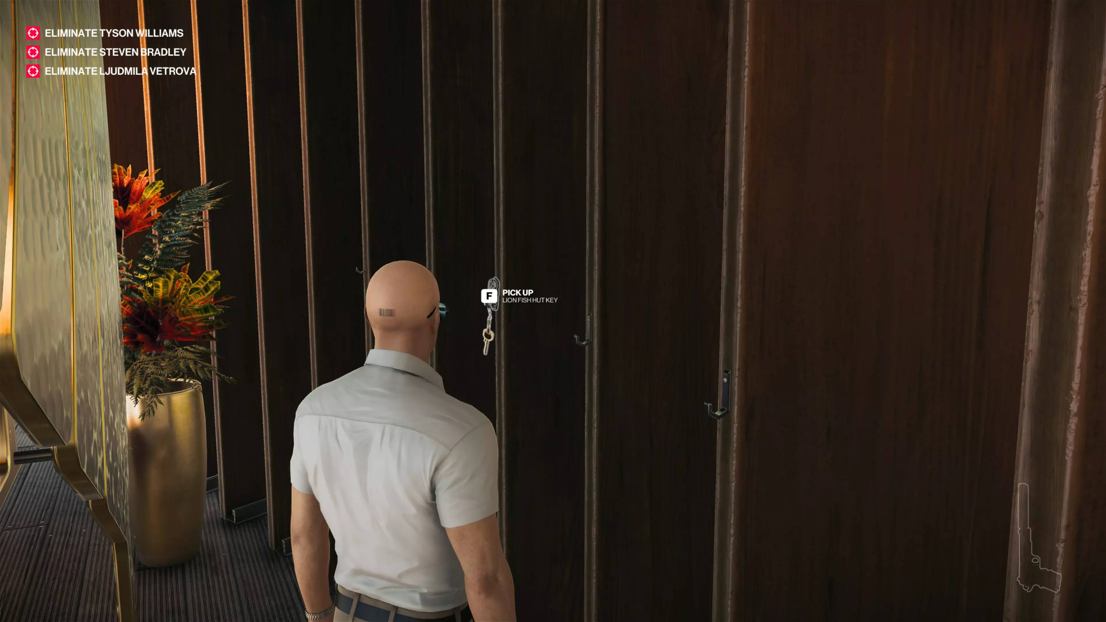 4/4:你需要在海龟小屋击倒杰森·波特曼以获取最终钥匙。他在与柳德米拉结束对话后会独自走进浴室,这是在不被发现的情况下将他制服的最简单方法。