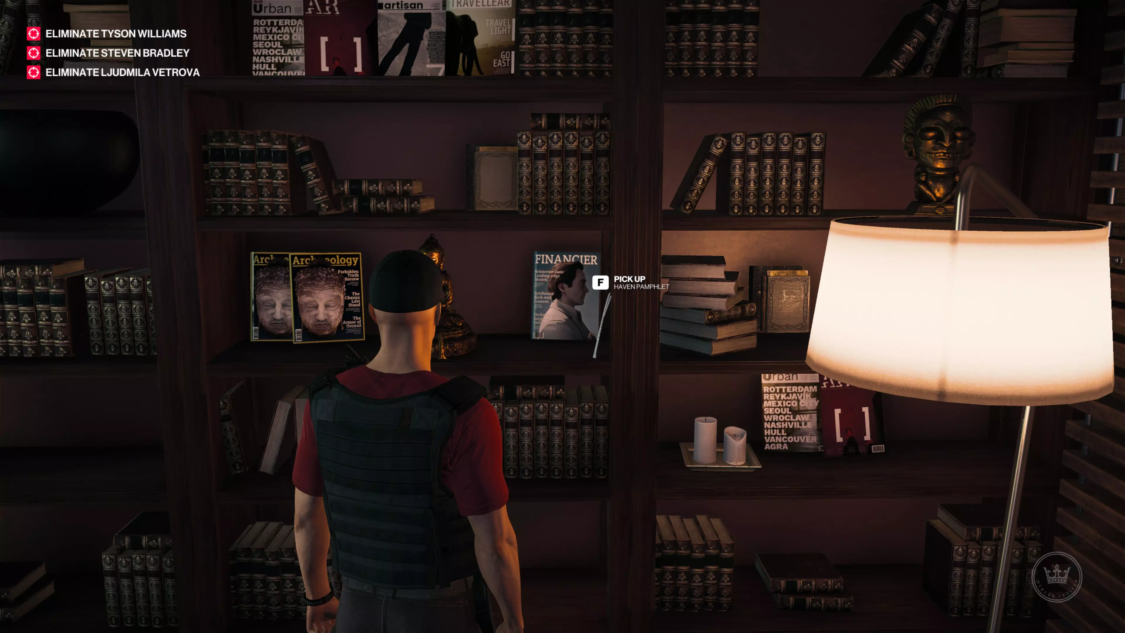 9/11:在有通往秘密办公室暗门的图书馆房间里,其中一个书架上(从现在开始你需要别墅守卫伪装)
