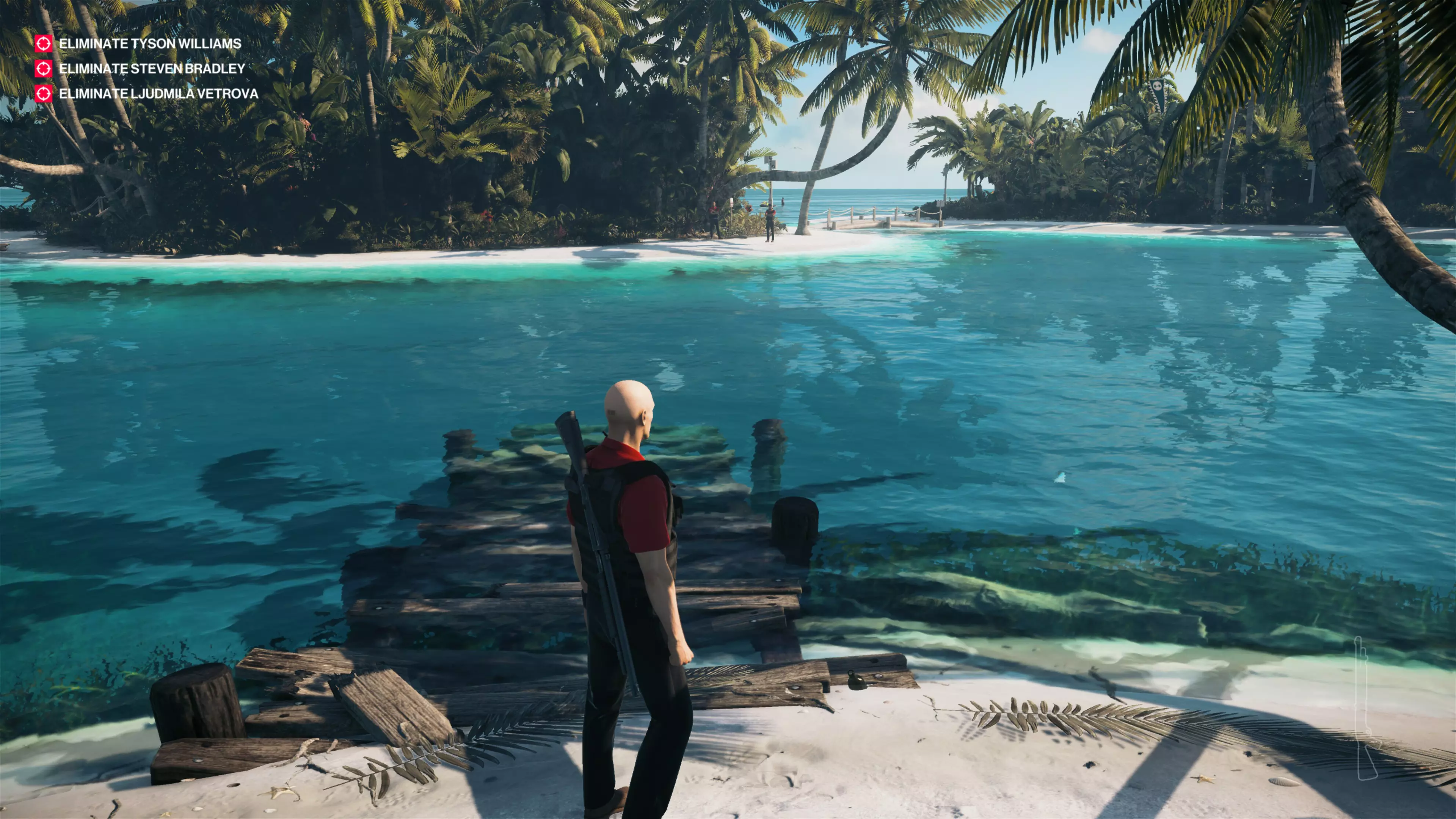 12&13/22:过桥前往私人岛屿,那里还有两个摄像头。再次躲进灌木丛中解决它们,这样就不会被发现了。