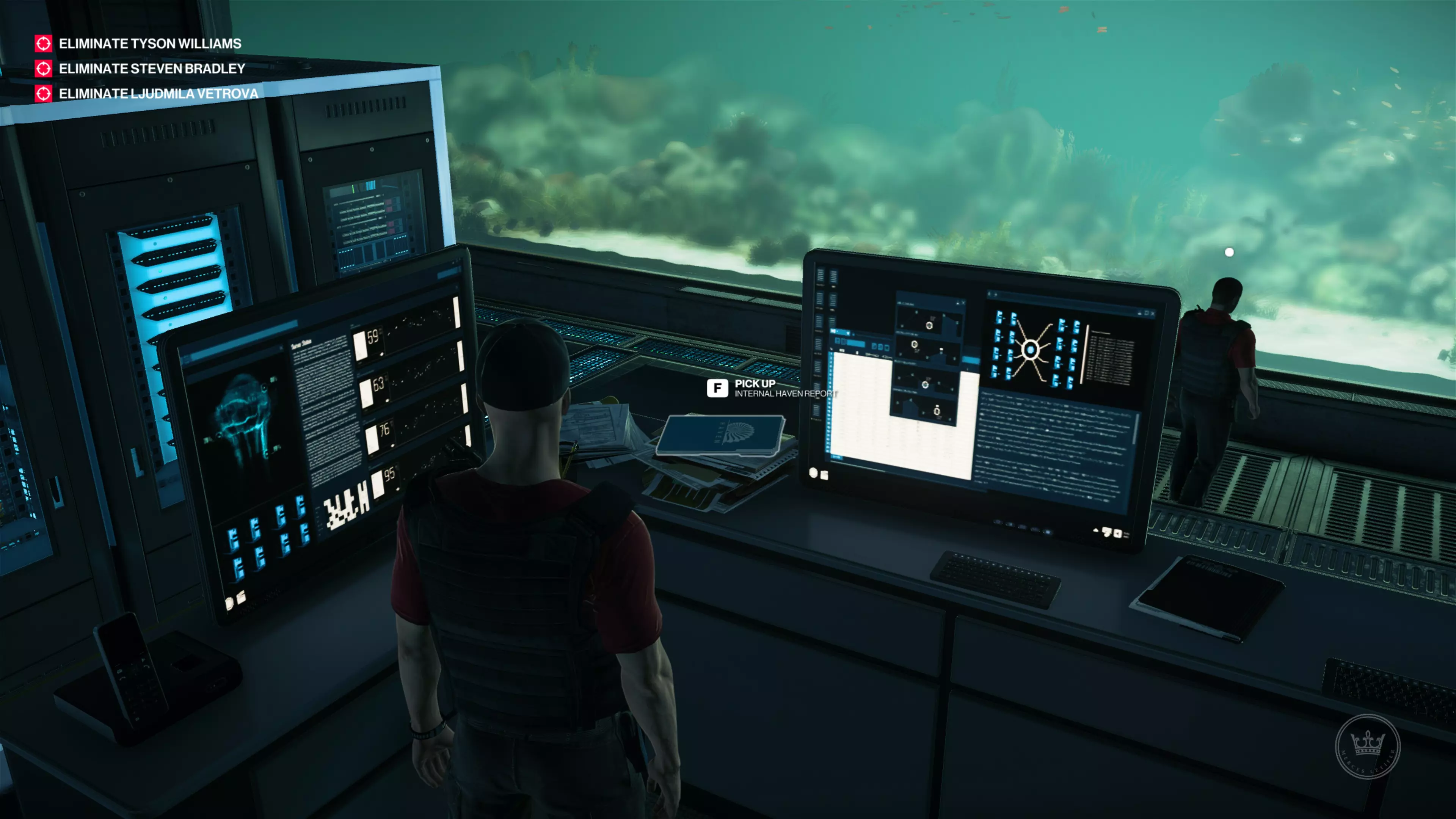 为此,你需要收集一份秘密避难所报告。你可以在地下服务器农场中心的保安 desk 找到它。