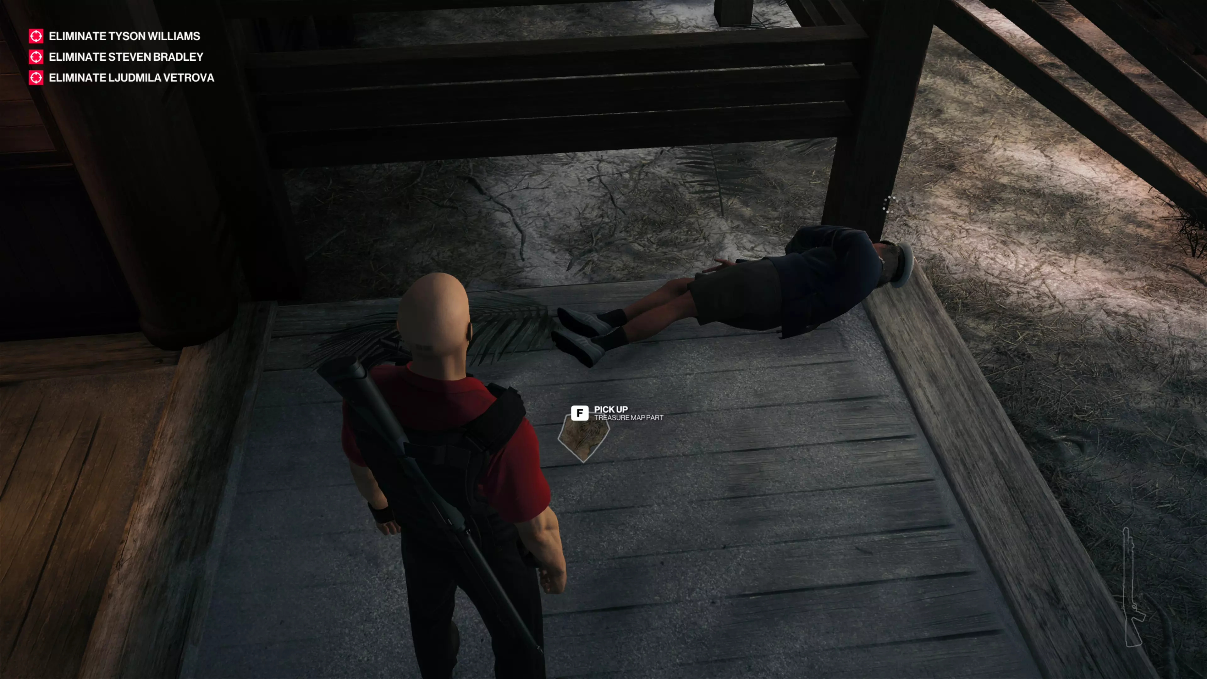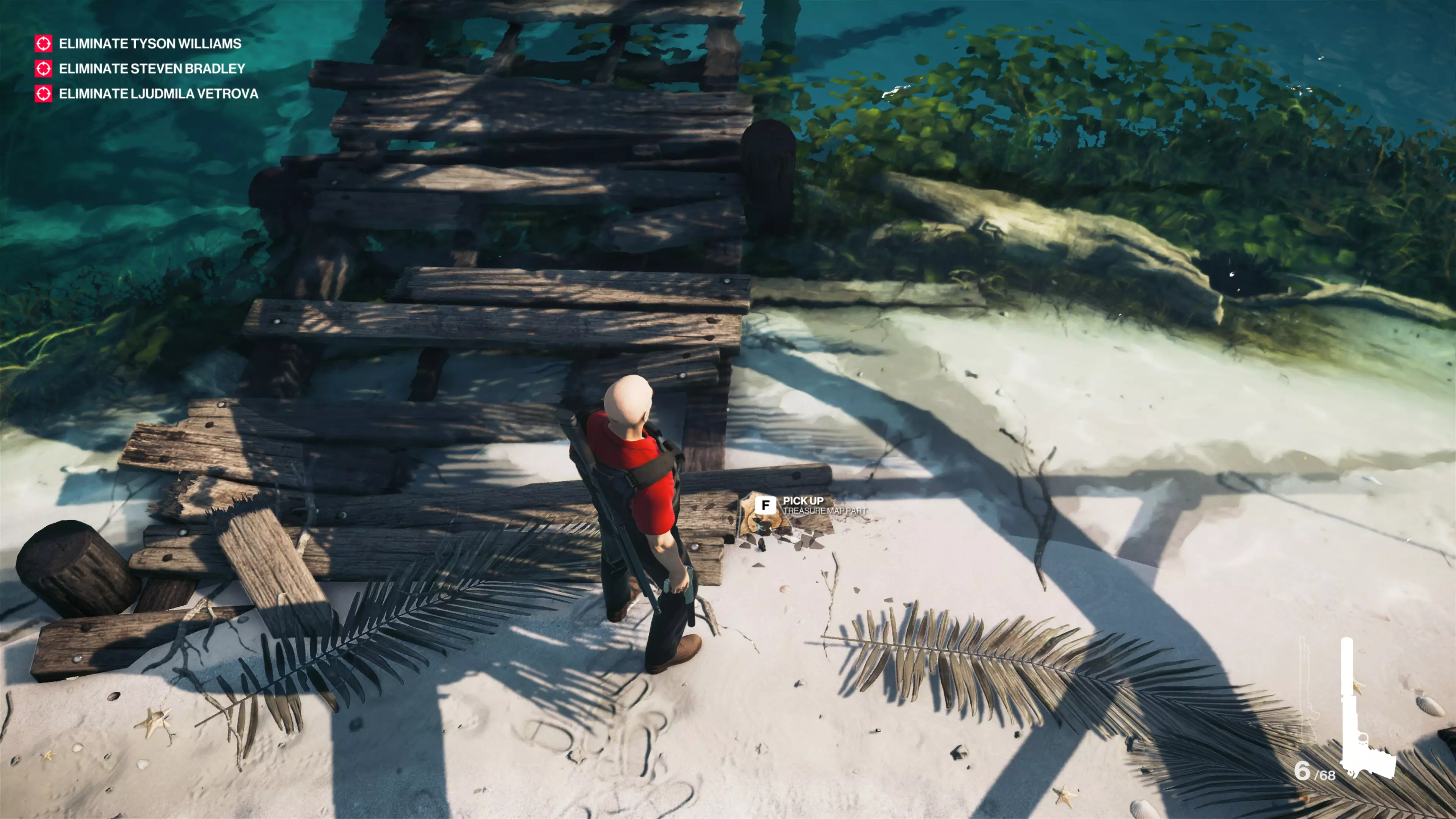 最后一部分有点难找。前往别墅,你会看到一个指向私人岛屿的小型破损码头,在码头底部有一个会在本能模式下显示的小瓶子。射击它就能找到地图的最后一部分。