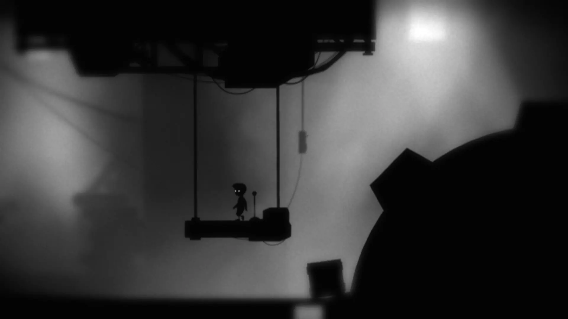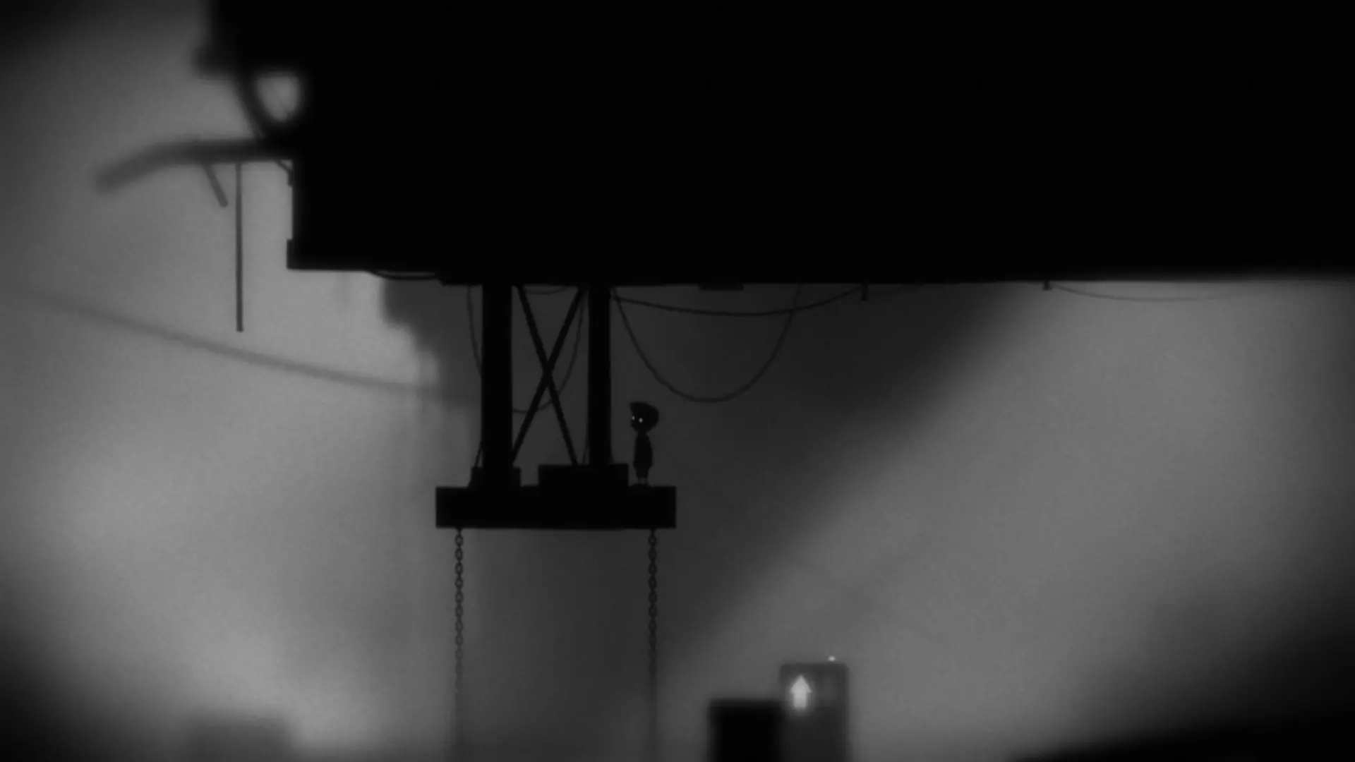 当电梯上升到合适高度后,需要跳到左侧伸出的绳子上。