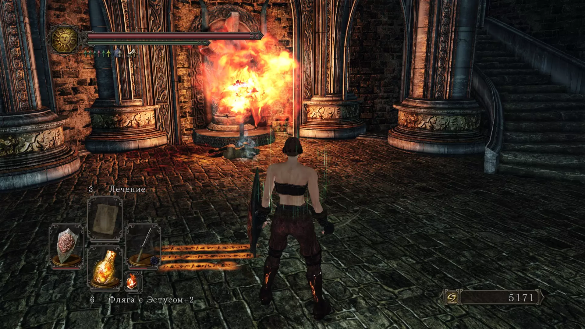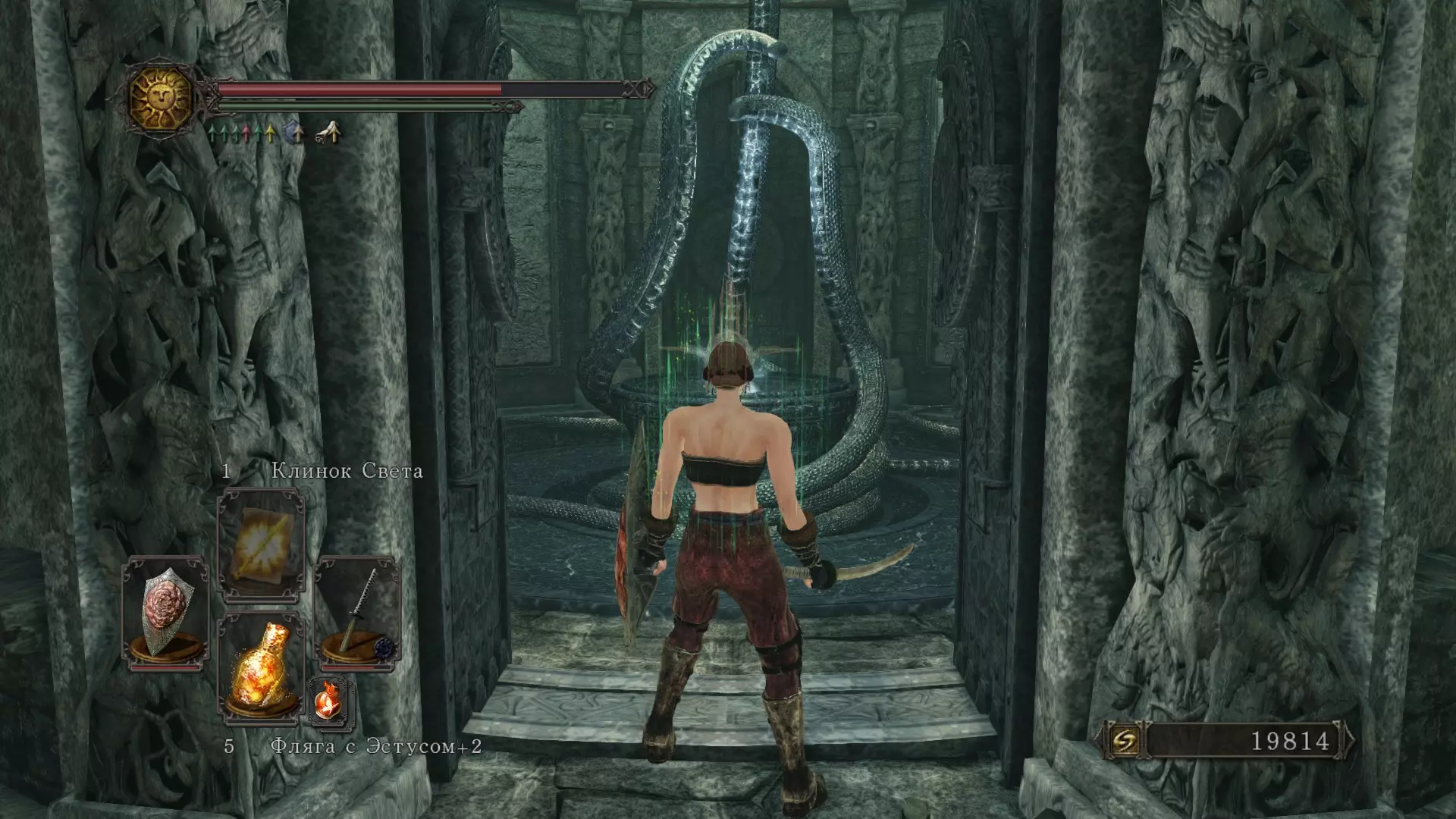 在内部你会遇到两个(或者更多,如果你召唤了独行者猎人施密特和卢卡提耶尔)巨人。击败他们后,你将获得【巨人之魂】和【遗忘钥匙】。