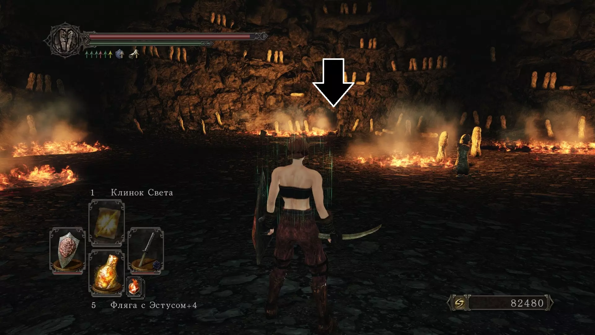 接下来你需要找到【沉重的铁钥匙】。为此,前往【巨人陨落之森】。钥匙位于有火蜥蜴的坑中。可以通过【最后的巨人】 Boss 门前的门进入那里,使用之前在【钢铁堡垒】区域捡到的【铁钥匙】。