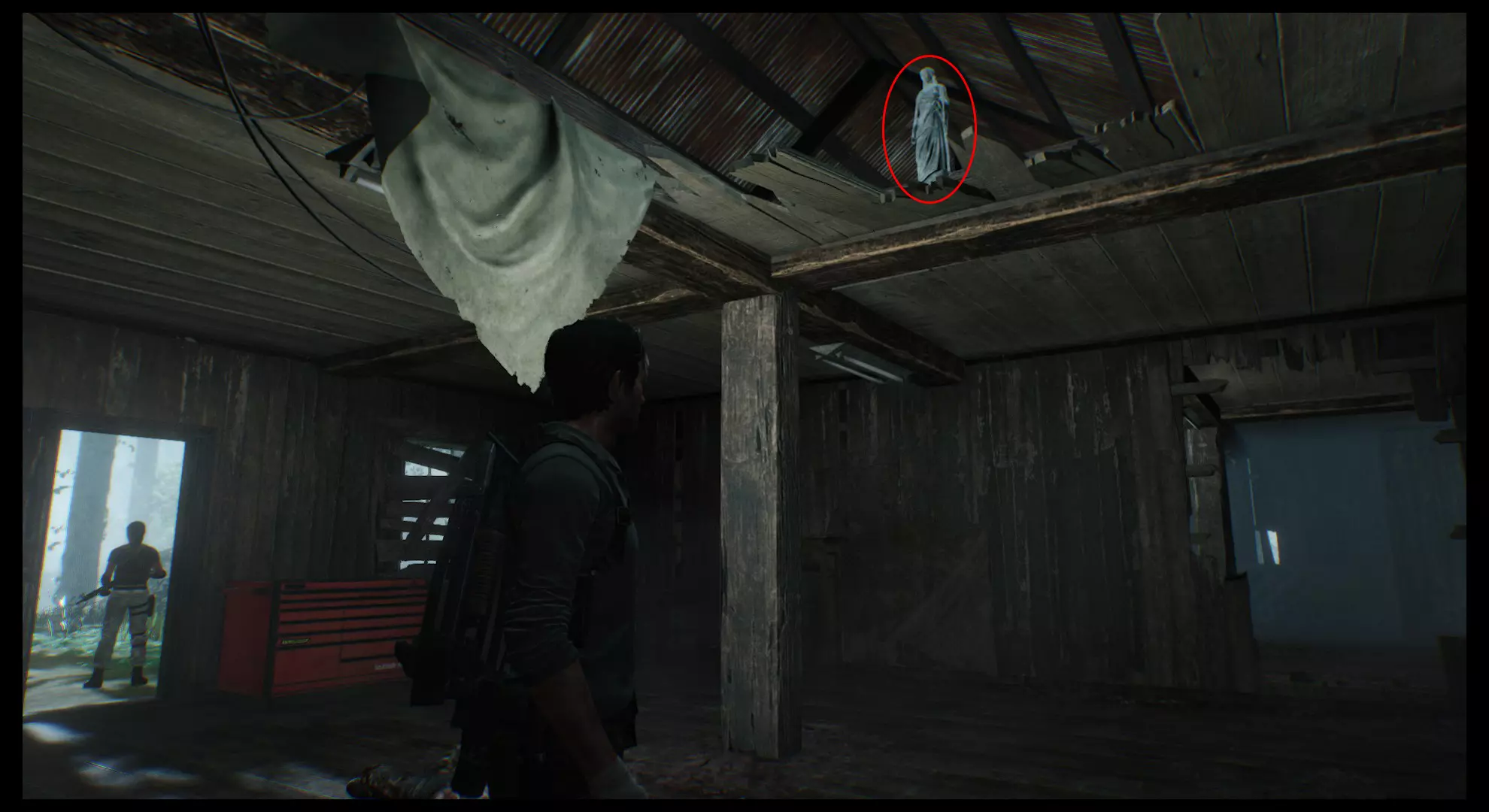 当你从武器库拿走猎枪并返回时,会看到电梯门已经打开。