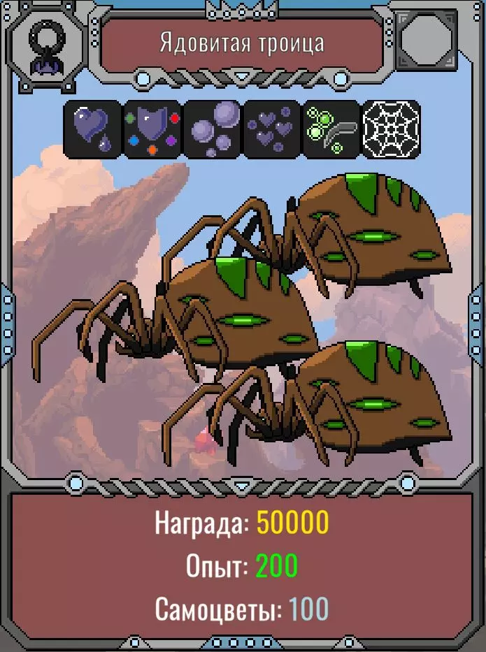 250000生命值。 免疫冰冻效果。 25%的减益效果抗性。 40%的元素、物理伤害和中毒抗性。 每6秒为每个蜘蛛叠加一层中毒效果(两只蜘蛛存活时叠加两层)。 策略:与之前的蜘蛛类似,但需要更高的伤害和治疗能力。 剧毒三重奏