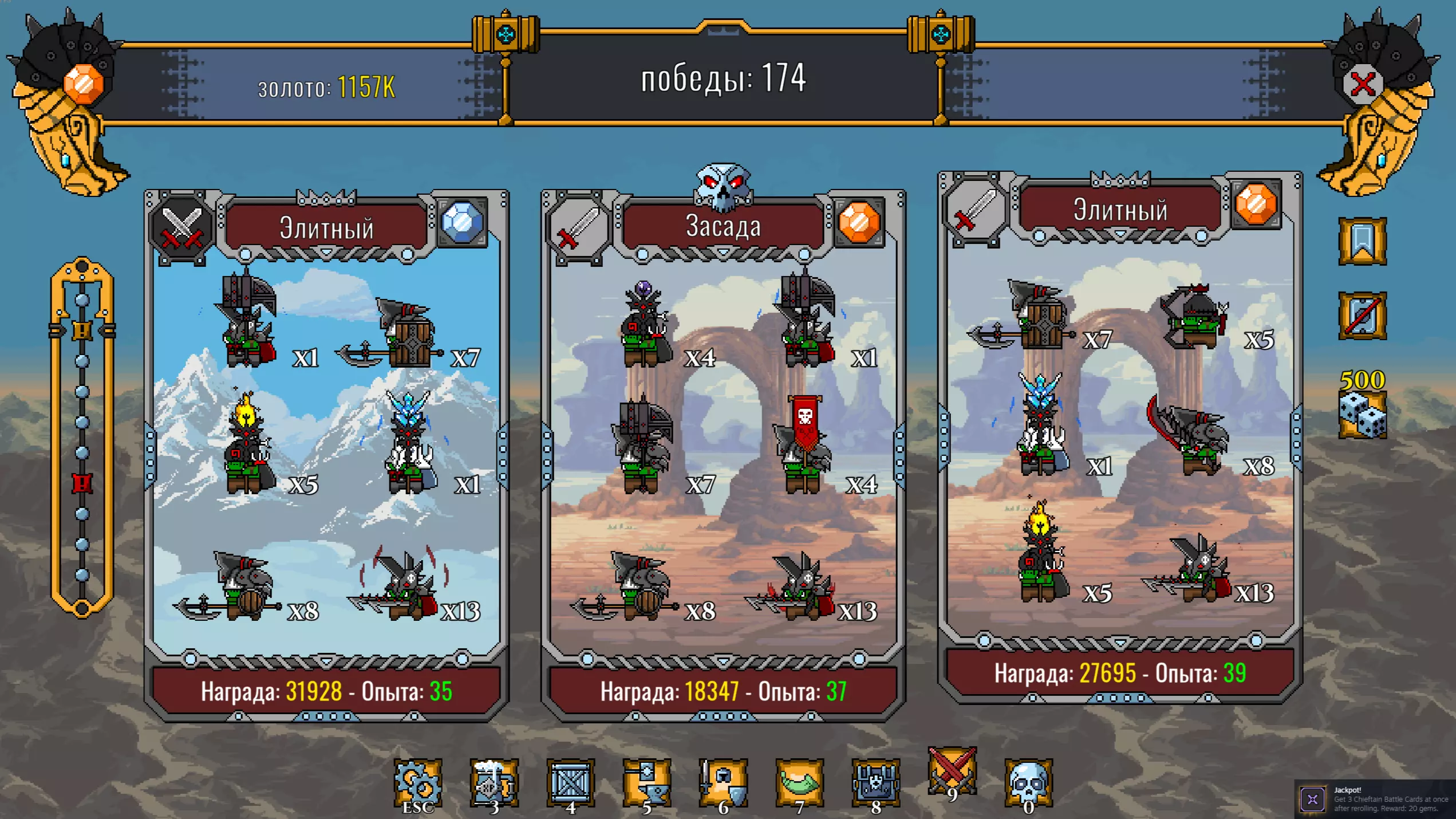 冠军中的冠军 招募一名老兵。 老兵在通过第50波后开始出现,起初概率很低,但50次循环可保证获得一名老兵。此外,通过第100波后也会奖励老兵。 主菜单中的成就 哦,我花了好长时间才弄明白这是什么以及在哪里完成它们。