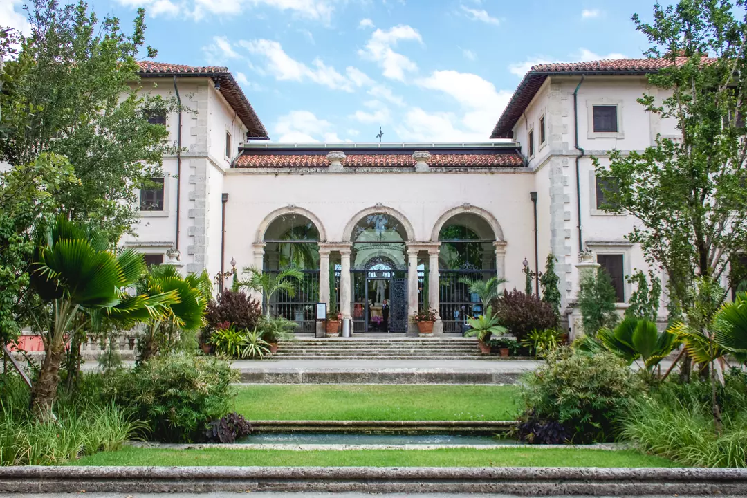 这张图片展示的是位于迈阿密的维兹卡亚博物馆及花园。北纬25°44′37″,西经80°12′37″。游艇