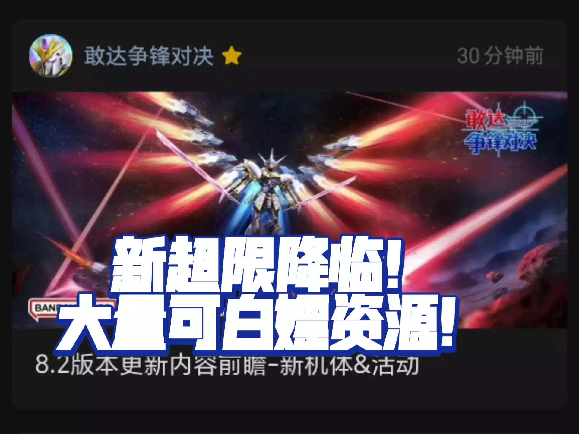 这是《敢达争锋对决》的新超限机体黑骑士小队神鸟-迦楼罗的改造评测内容,该机体出自高达SEED,8.2免费推出,内容展示了它的属性、技能机制及技能练习演示。