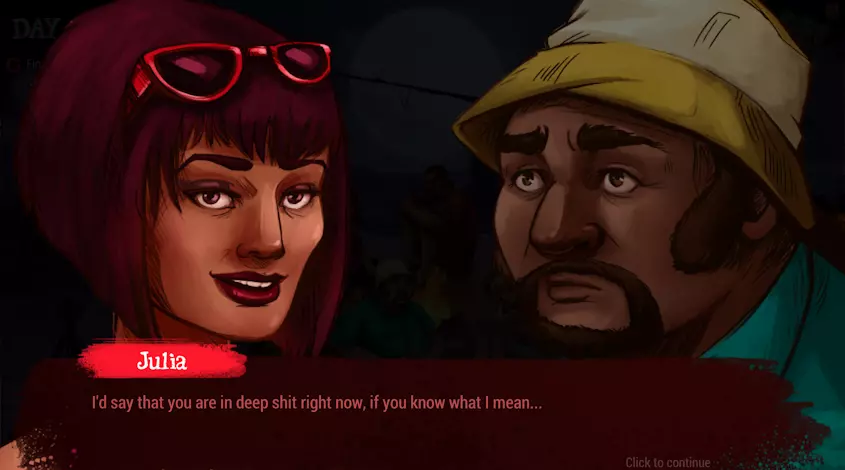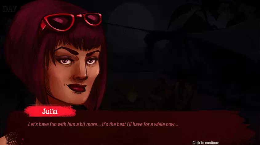 附带伤害 真正的敌人并非总是显而易见的。 游戏中有一个次要情节,讲述朱莉娅是一名俄罗斯间谍,她意图铲除一名敌方特工,她认为这名特工是岛上除她丈夫外的三名男性之一:鲍勃、雅各布或亚历杭德罗。要获得这些成就,你需要与朱莉娅进行特定的营火对话。只要你与这三名嫌疑人的关系不是太负面,这些对话就会自然发生。 1.朱莉娅有一段内心独白,透露她是一名间谍,并且正计划暗杀雅各布、鲍勃或亚历杭德罗中的一人。2 - 朱莉娅询问鲍勃是否经常去国外旅行 3 - 朱莉娅询问雅各布是否经常去国外旅行 4 - 朱莉娅询问亚历杭德罗是否经常去国外旅行 5 - 朱莉娅调侃鲍勃在她穿比基尼时监视她(“一个间谍能这么笨吗?”) 6 - 朱莉娅探问雅各布对政府的看法(雅各布内心很恐慌) 此时,朱莉娅已经准备好怀疑鲍勃或雅各布了。触发条件如下: 雅各布:与朱莉娅的关系非常负面(综合值-50或更低) 鲍勃:与朱莉娅的关系为正面,且此前鲍勃和尤里曾有过关于鲍勃前政府工作的对话 7 - 朱莉娅表示她强烈怀疑鲍勃/雅各布是间谍(一旦她怀疑其中一人,就无法再获得另一人的成就) 8a - 朱莉娅称她确定是雅各布,并会在下次机会将其灭口(Collateral Damage) 8b - 朱莉娅提到她偷听到了鲍勃和尤里的对话,并会在下次机会将鲍勃灭口(Tango Down!)