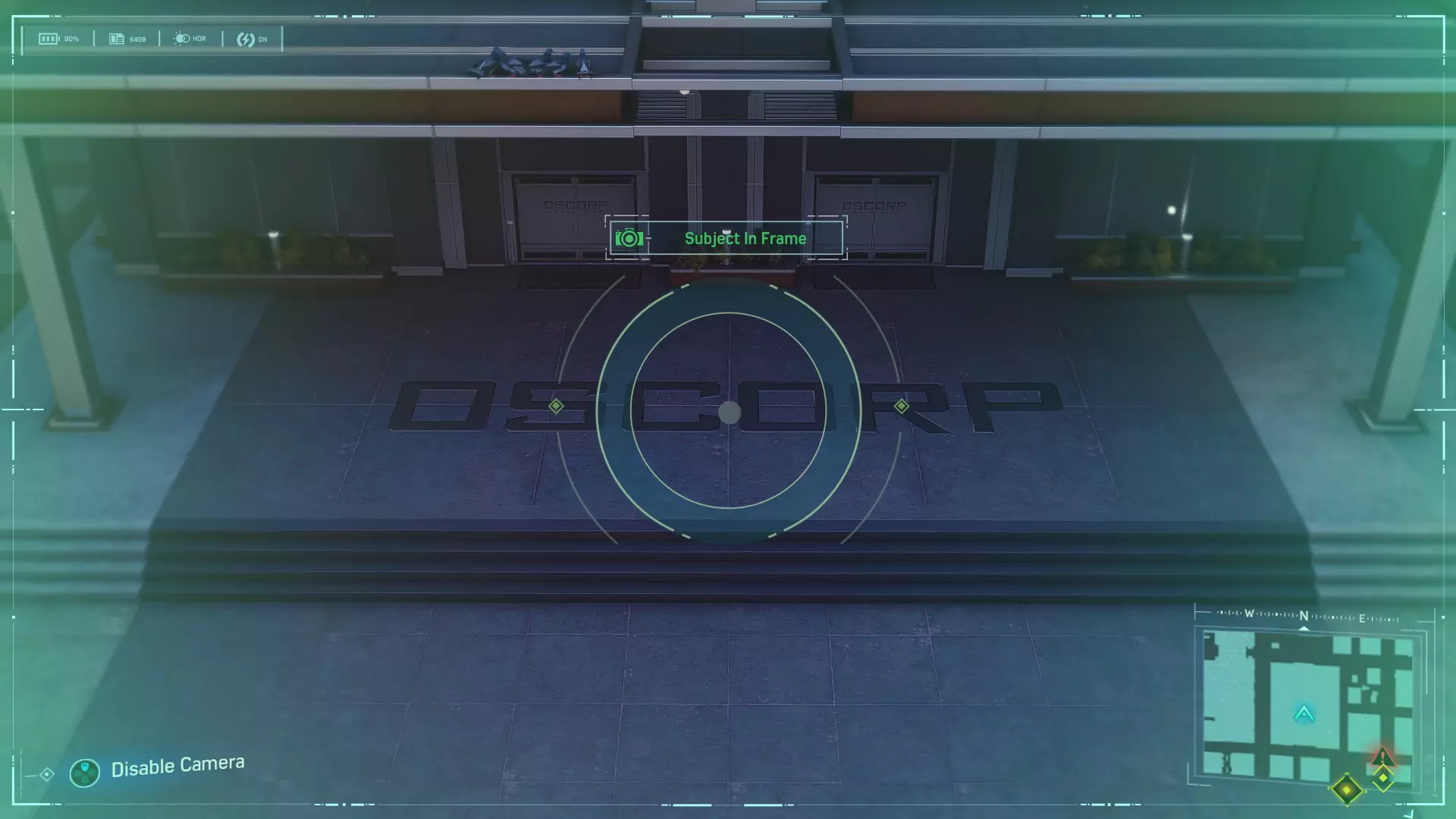 奥斯本安保大楼入口处的地板上写着“Oscorp”。